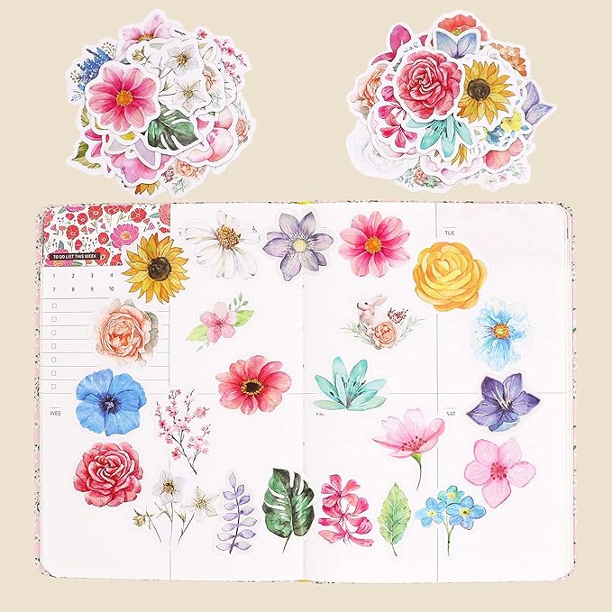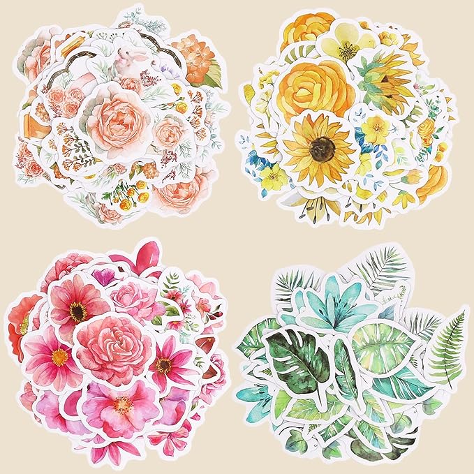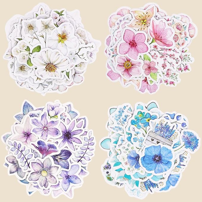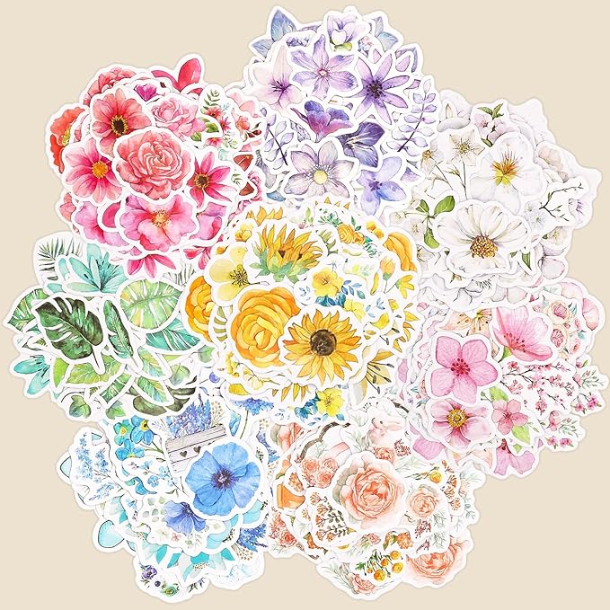 360 Pcs Flower Sticker Set - 120 Unique Designs - Decorative Matte Paper Floral Decals for Scrapbooking, Bullet Journals, Planners, and DIY Arts & Crafts