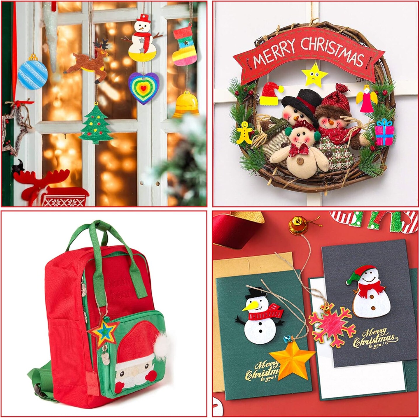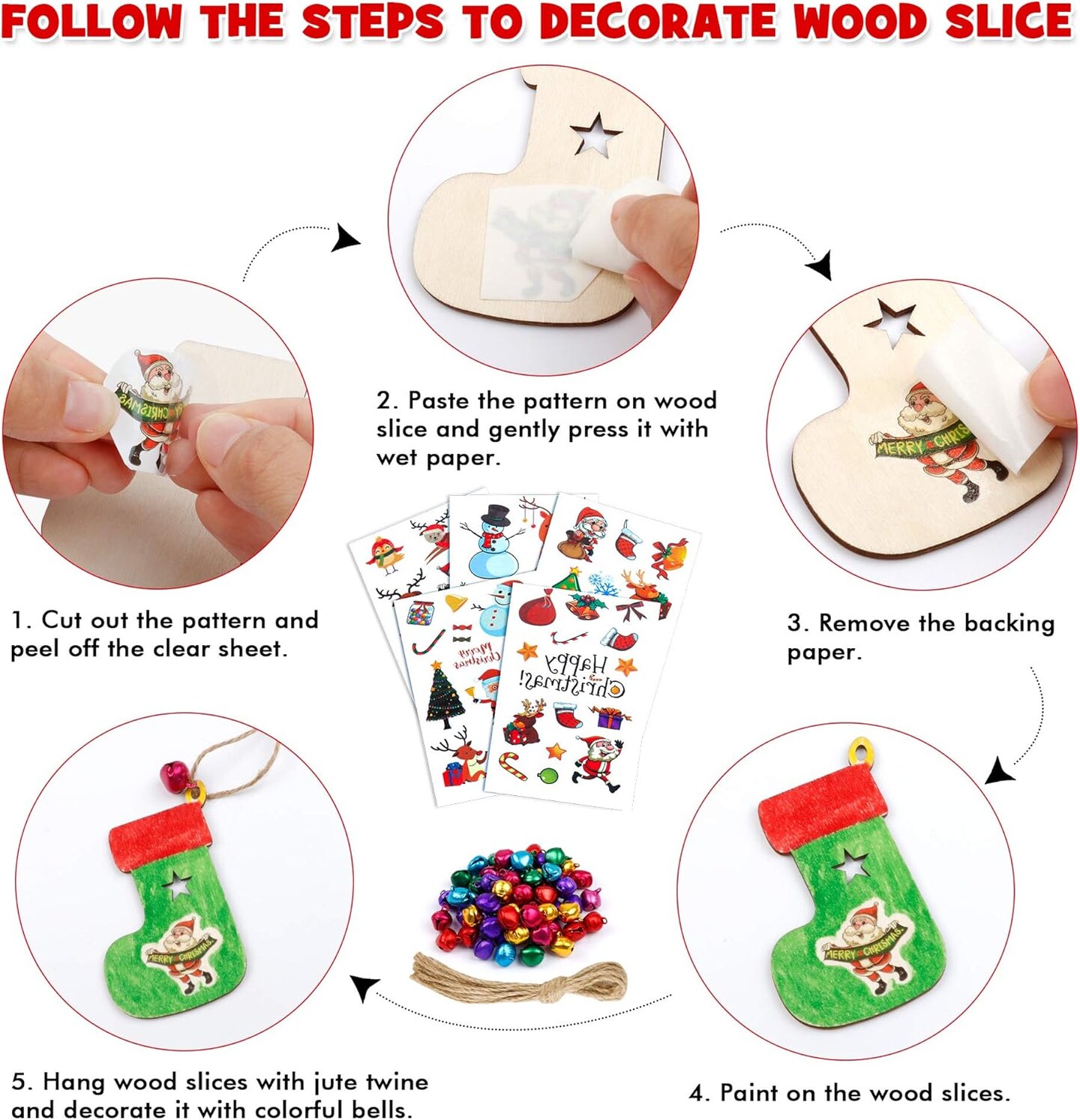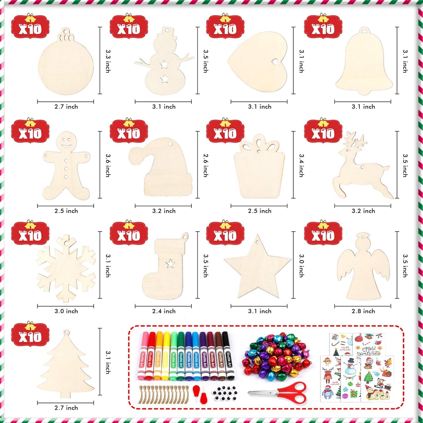 360 PCS Wooden Christmas Ornament Kit, 130 Unfinished Wood Slices with 13 Styles, 130 Jute Twine, 12 Colors Washable Markers, 50 Bells, DIY Christmas Decoration Crafts for Kids and Adults