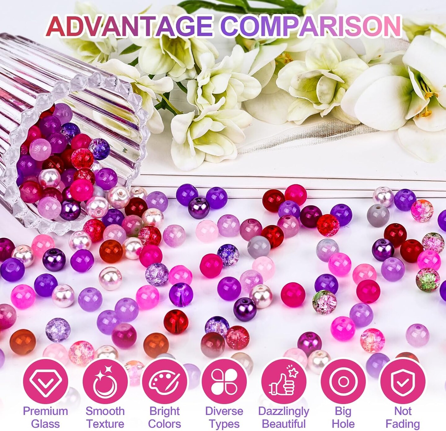 3600pcs 8mm Glass Beads Making Kit (6Box Colorful Glass Beads)