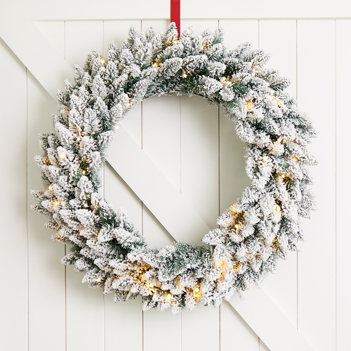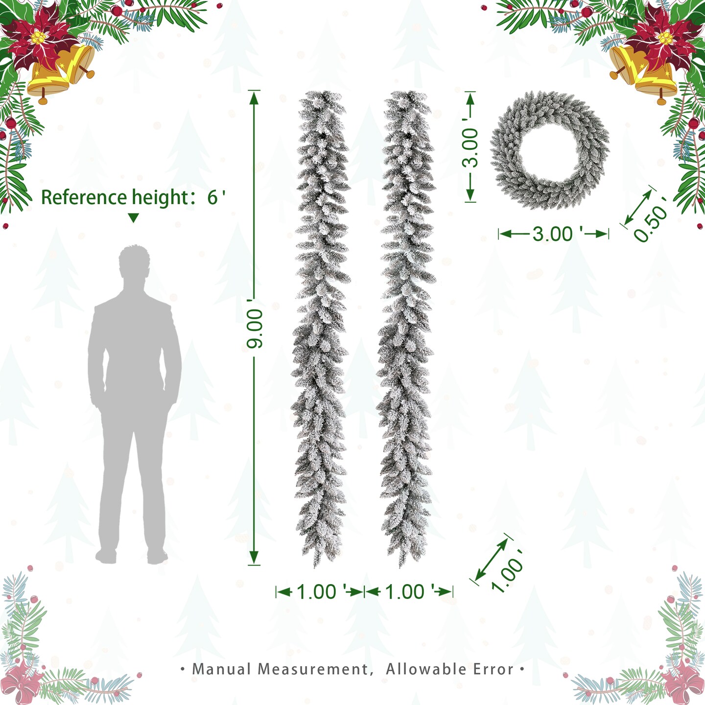36"D Oversized Pre-Lit Snow Flocked Christmas Wreath and Matched 2pk 9ft Garland Set with Timer