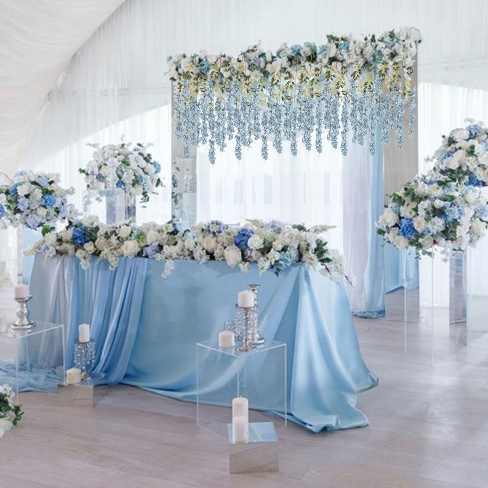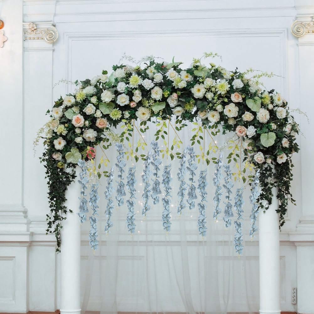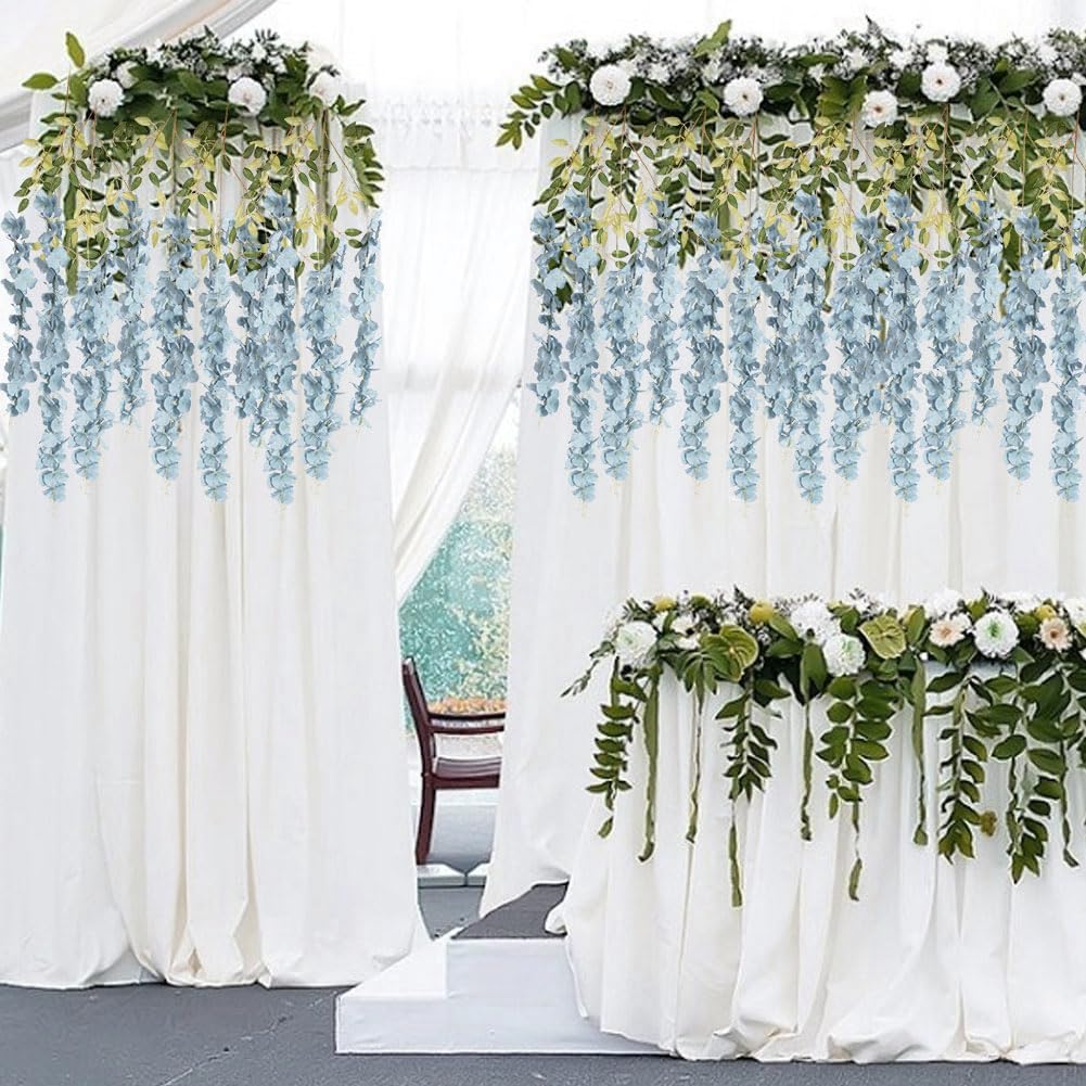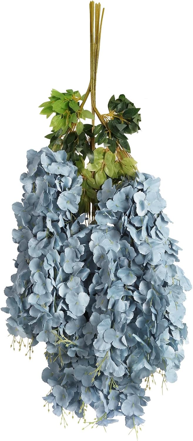 3.6ft Dusty Blue Fake Hanging Flowers Garland Silk Flowers Rattan