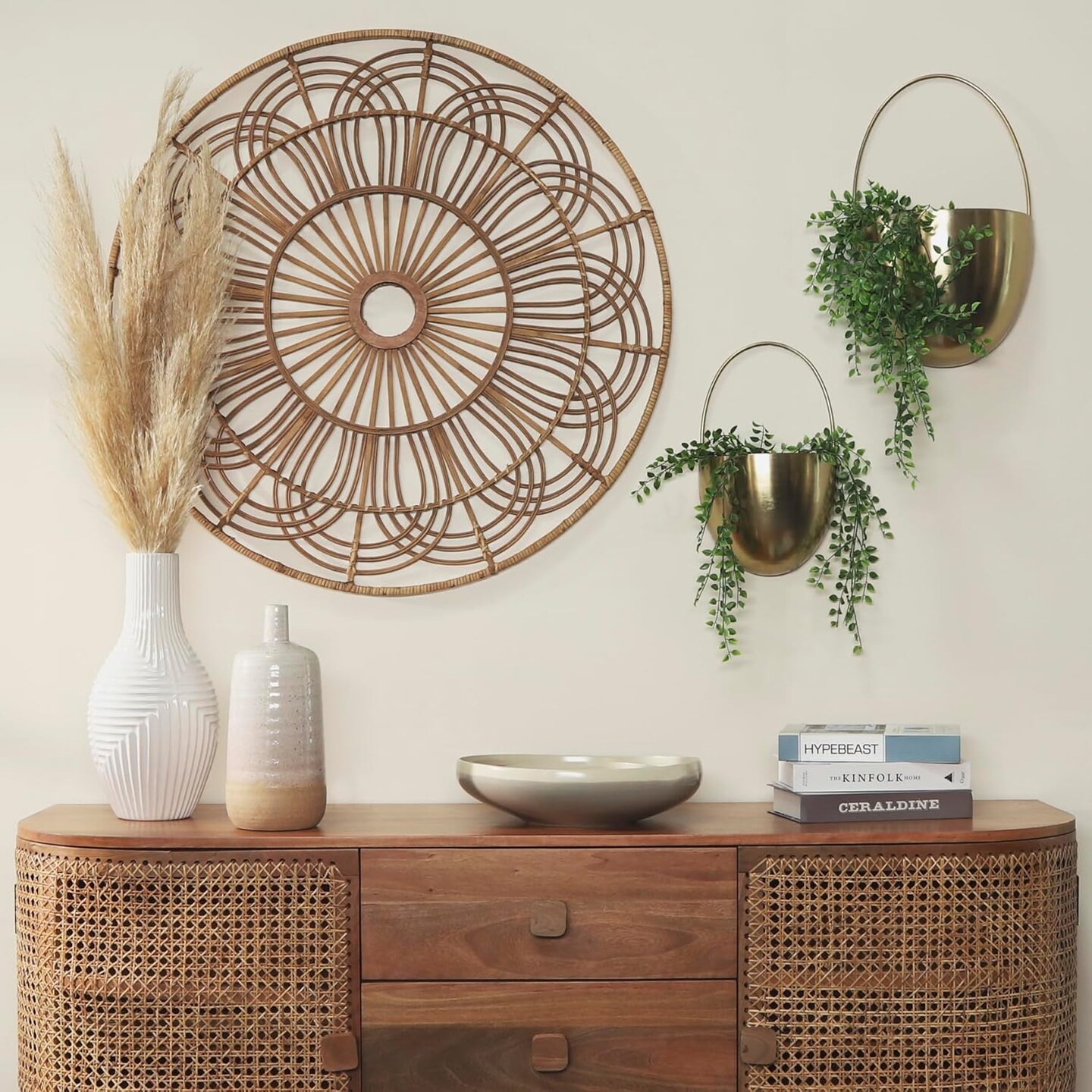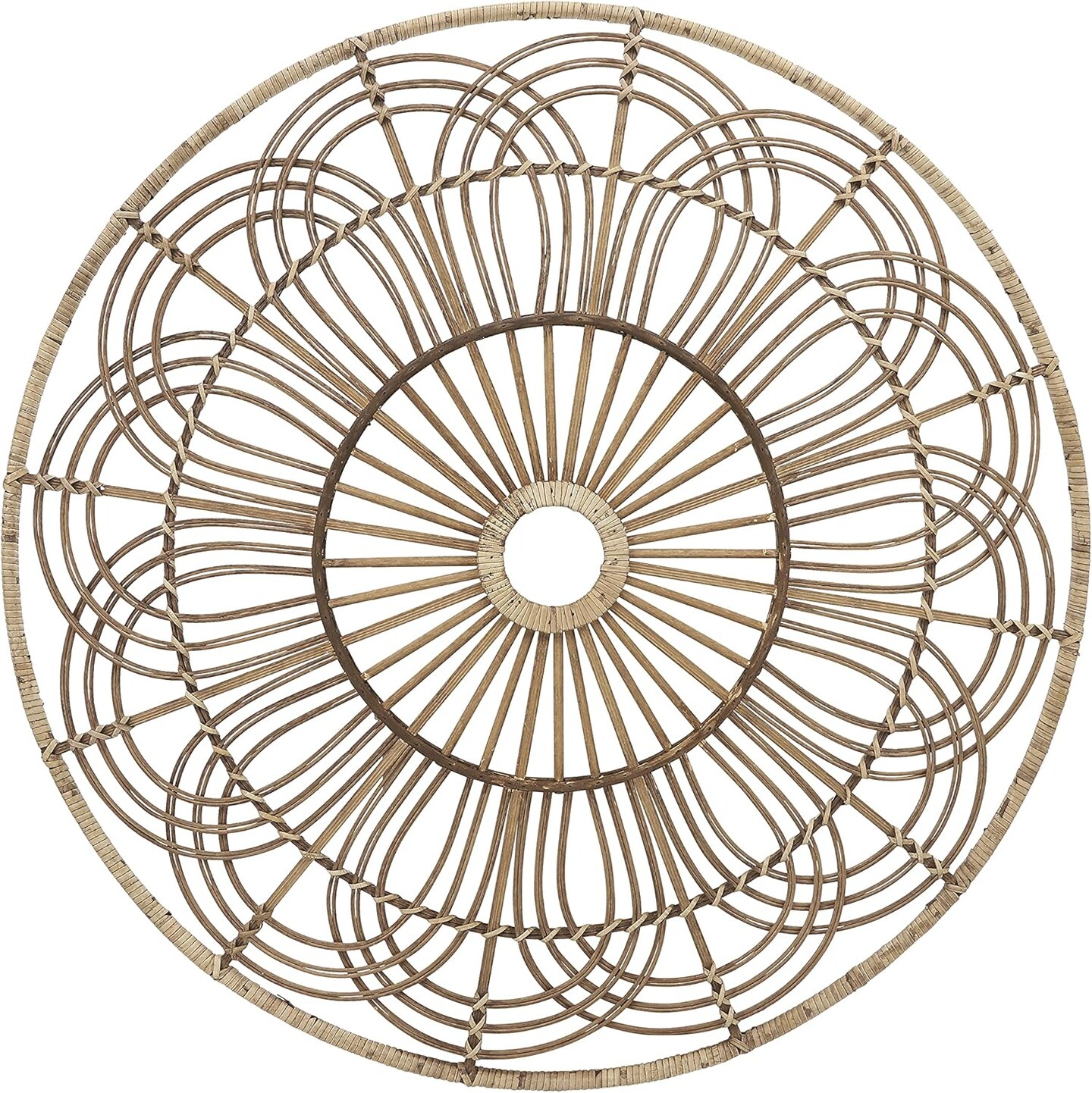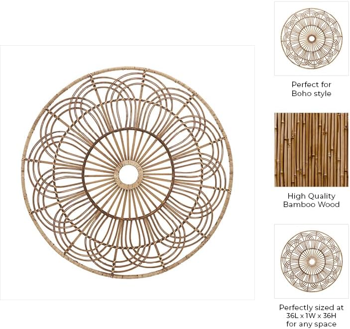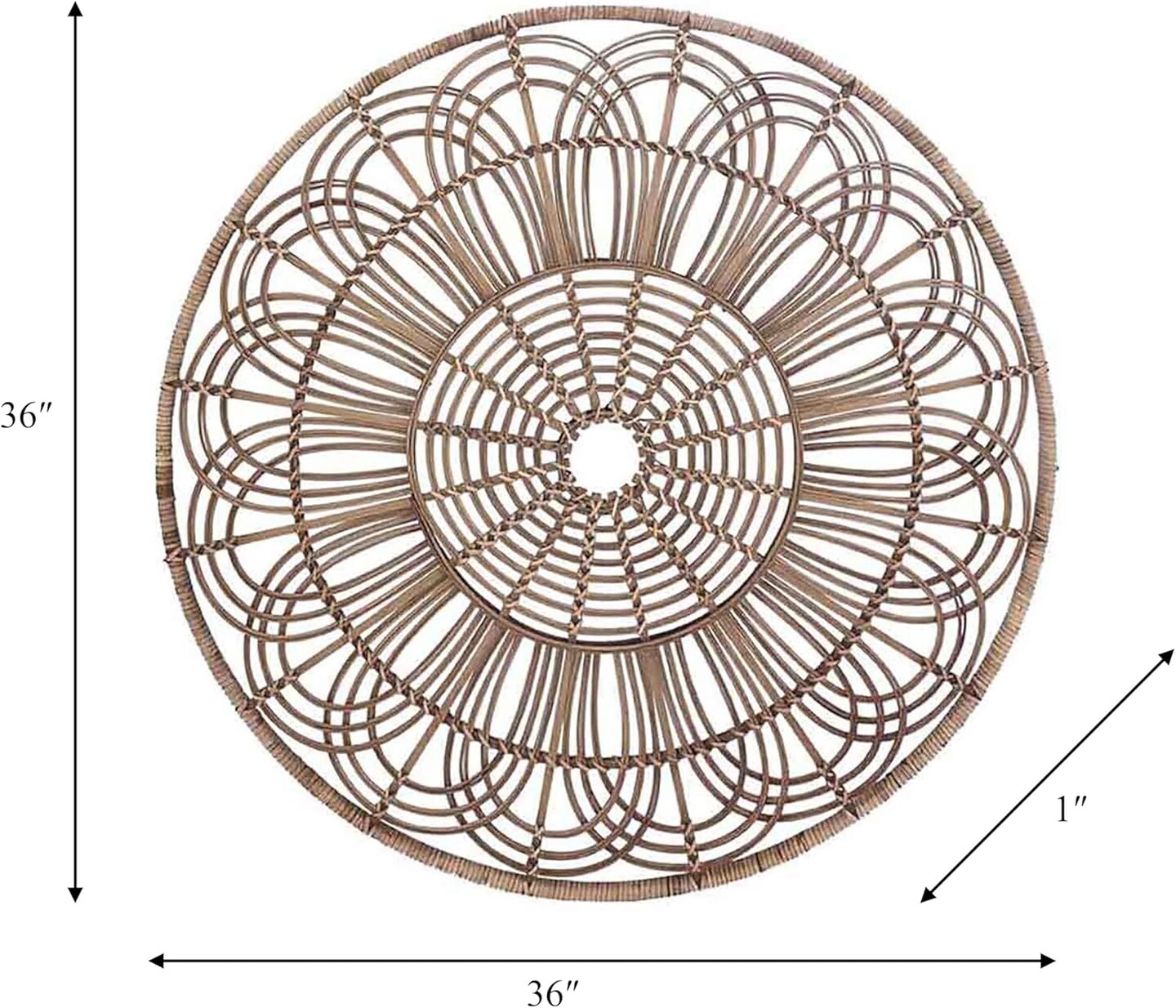 36-Inch Handwoven Boho Round Bamboo & Rattan Wall Hanging