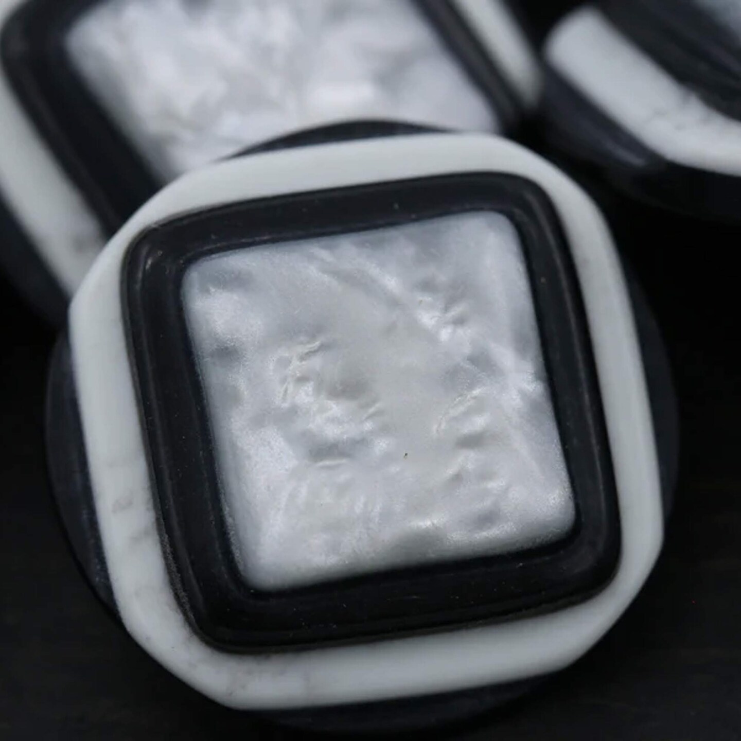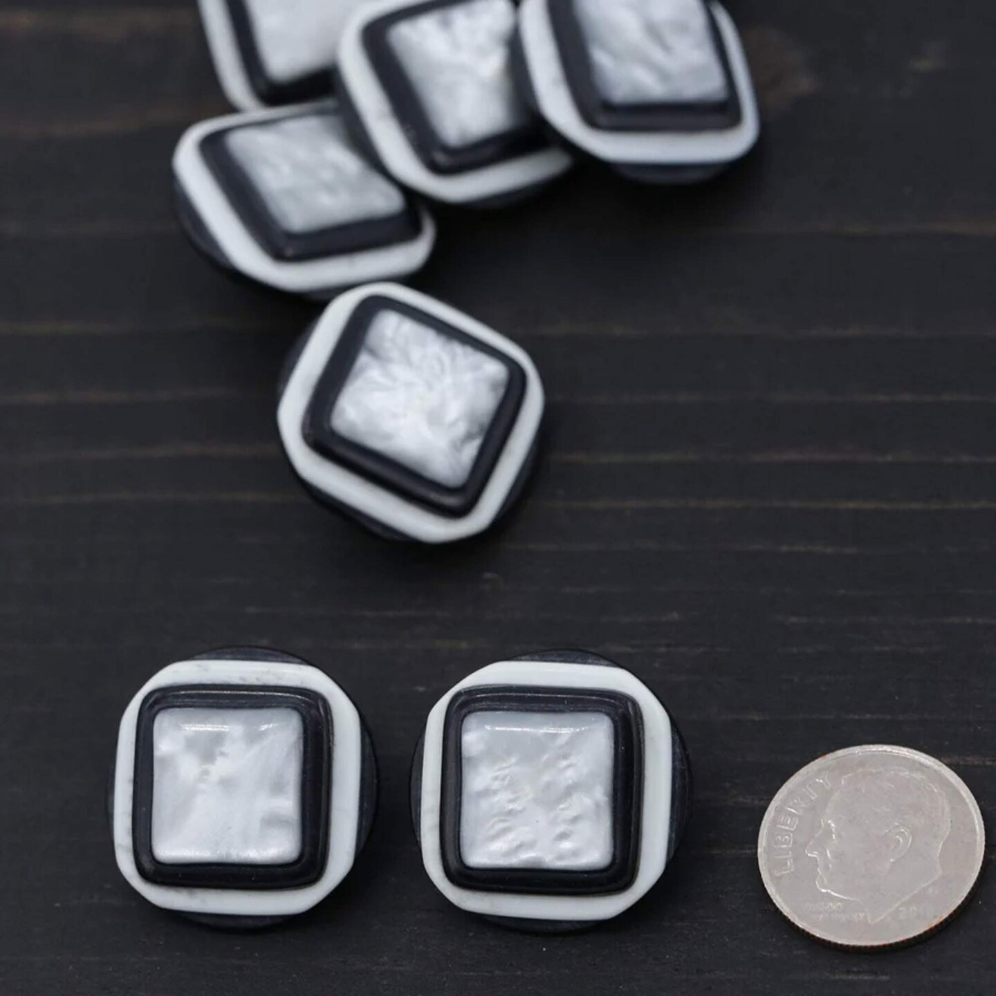 36L 23mm / 15/16" Square Shell Top Buttons Black White Pearl Layer Shank Style Vintage Button