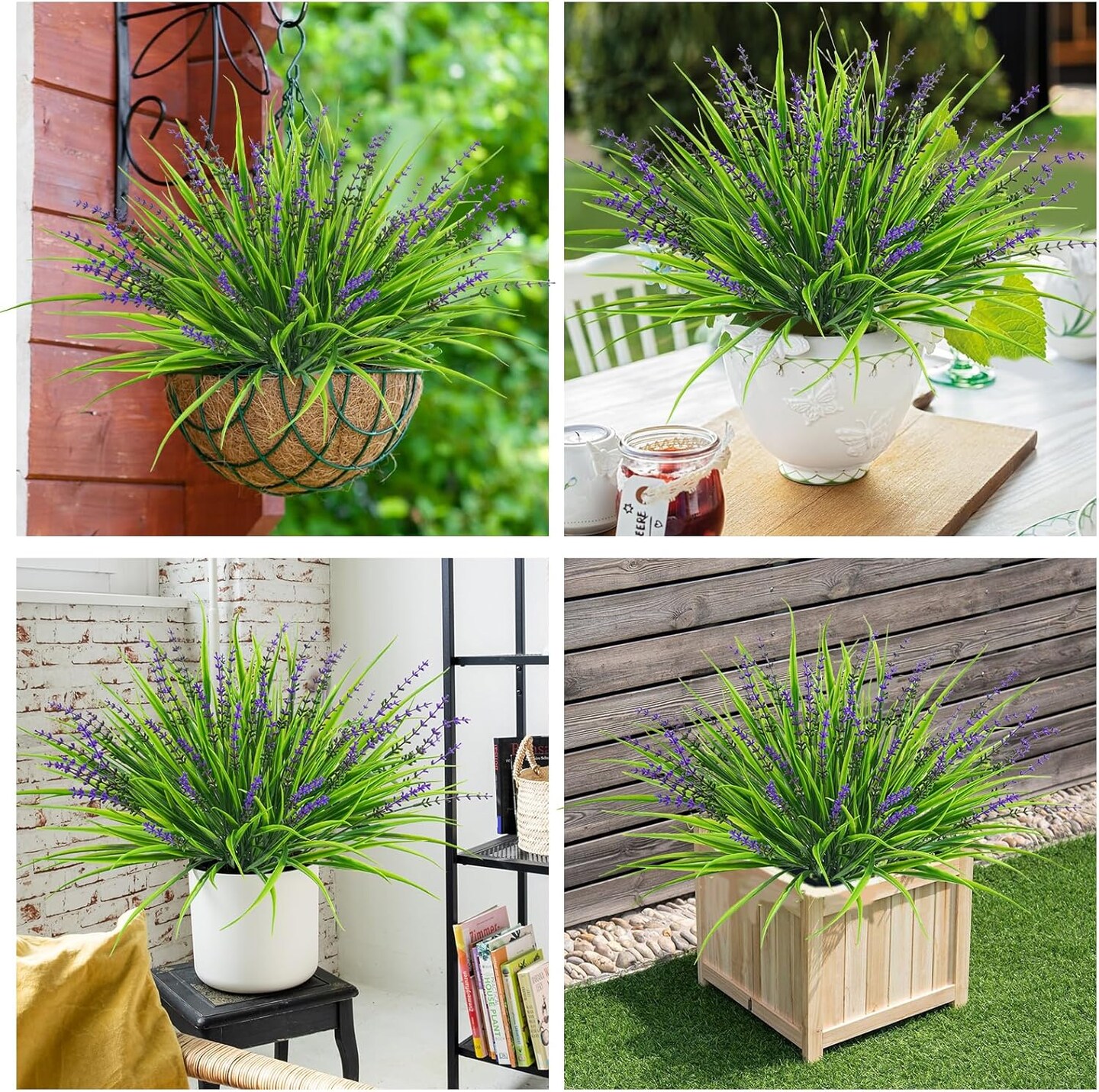 36-Pack Artificial Outdoor Flowers – UV-Resistant Faux Monkey Grass and Greenery for Porch, Garden, Window Boxes, Home, Office, and Desk Decor (Purple)