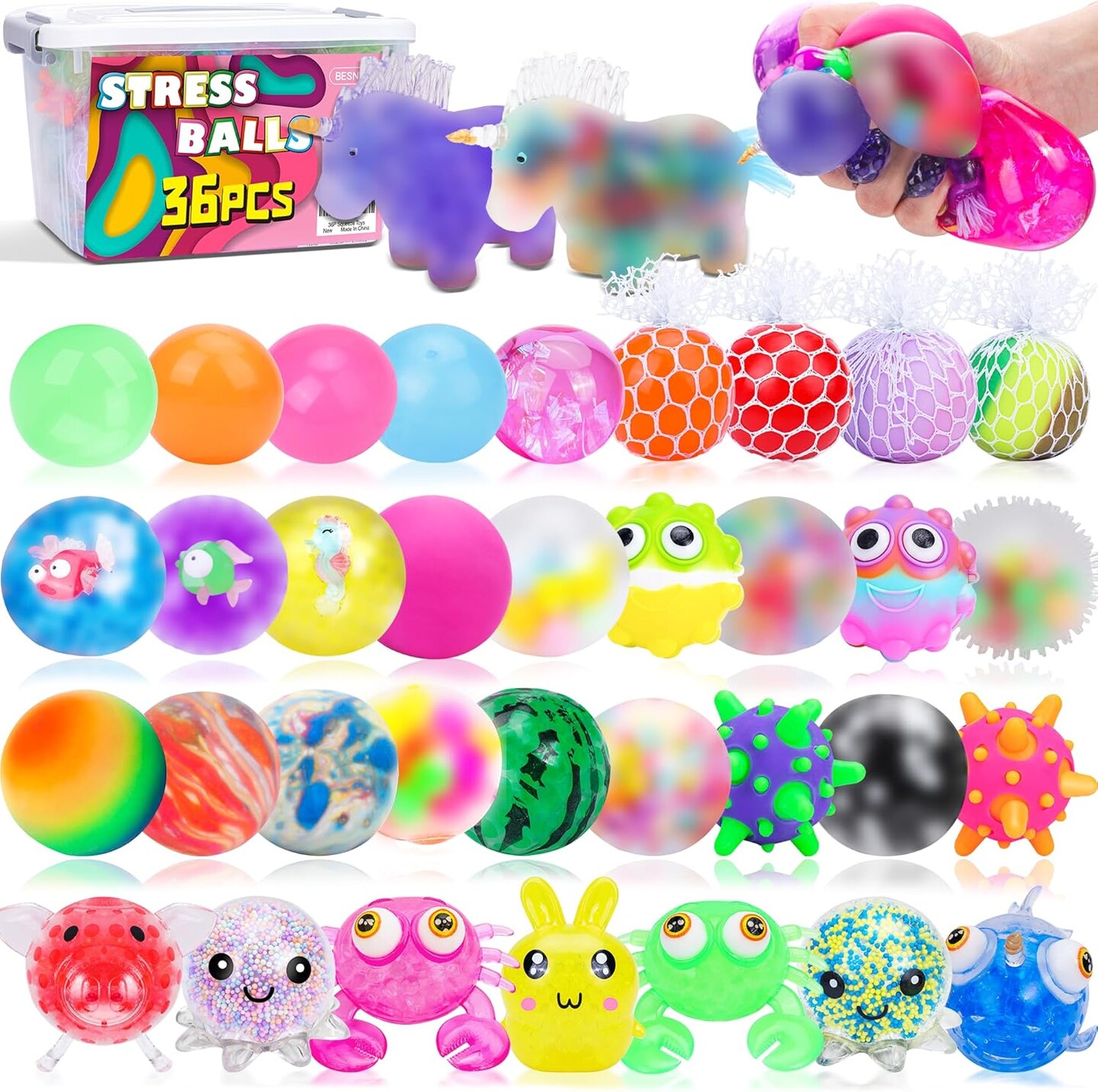 36-Pack Squishy Stress Balls – Fidget Squeeze Balls for Adults & Kids, Stress Relief Toys, Party Favors, Prize Box Fillers, Relaxation & Fun (36 PACKS Squeeze Balls)