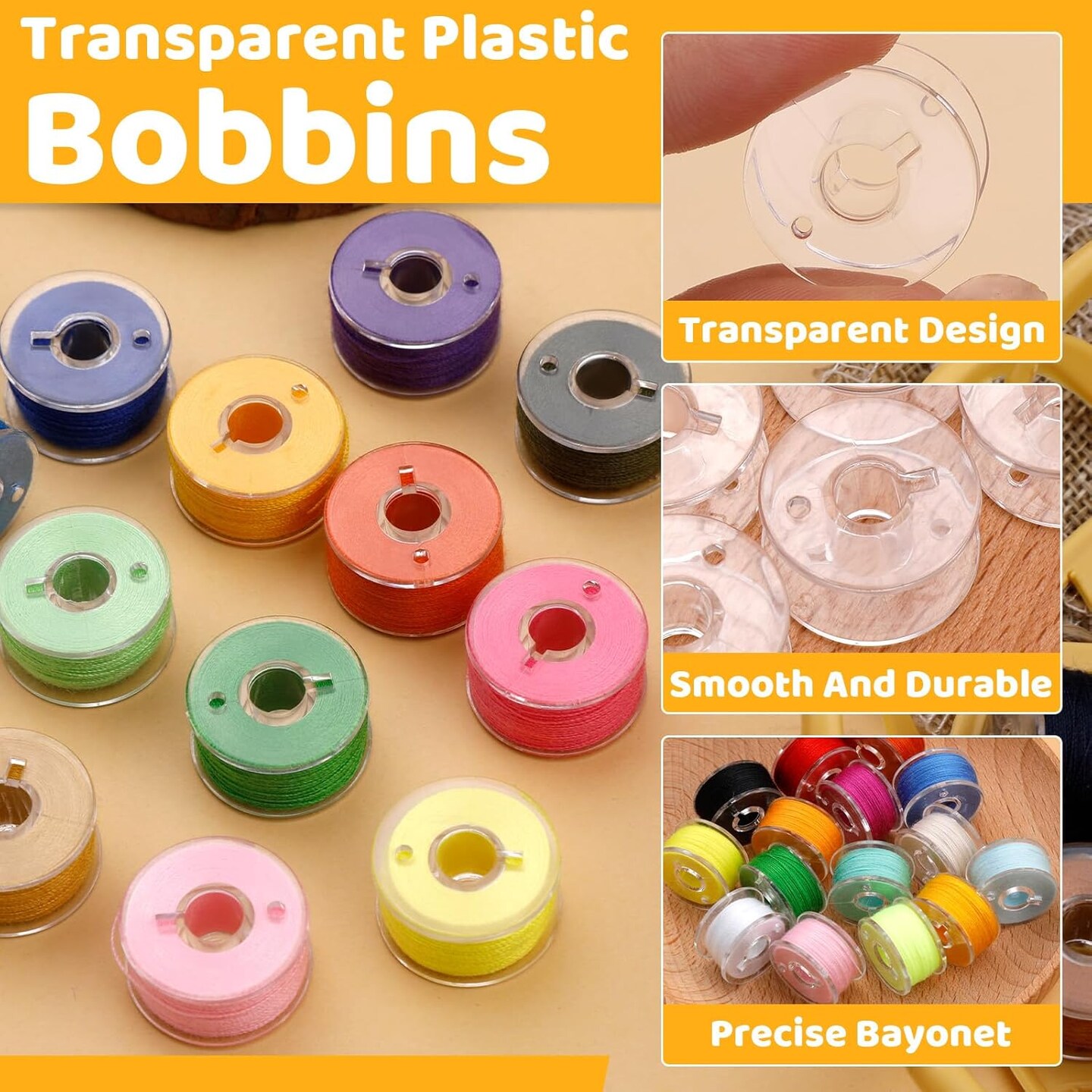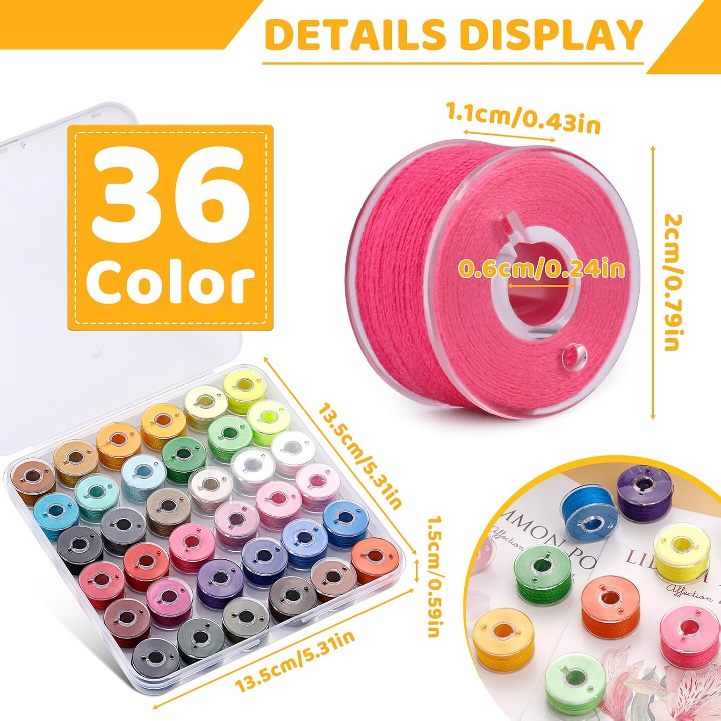 36Pcs Bobbins and Sewing Threads Prewound Bobbin