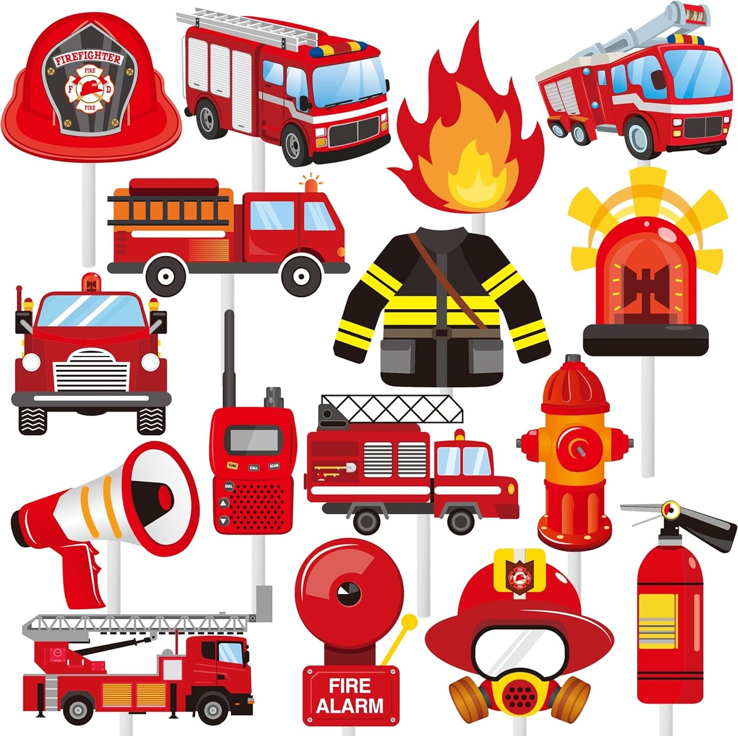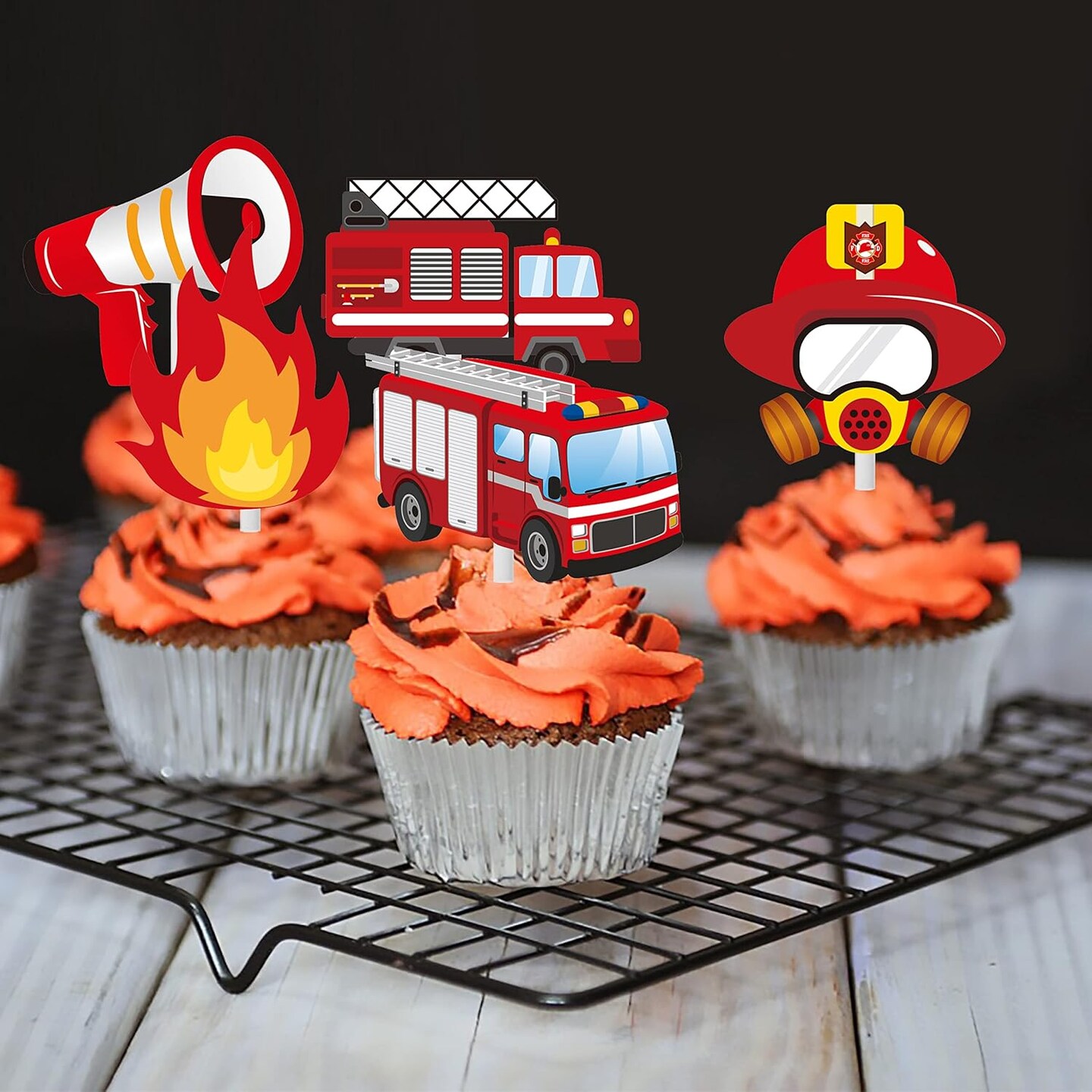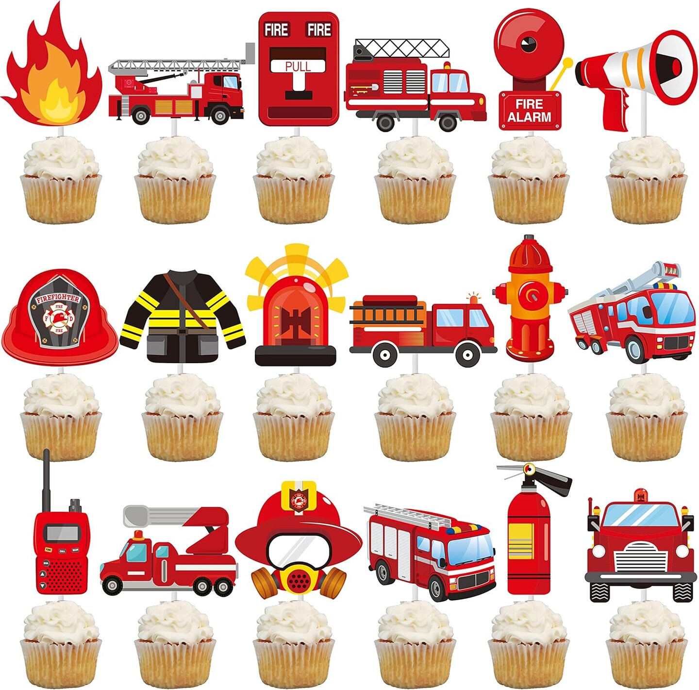 36pcs Fire Truck Party Cupcake Toppers Firefighter Baby Shower Decoration Fireman Themed Birthday Party Supplies Fire Engine Rescue Bday Cupcake Pick Decorations