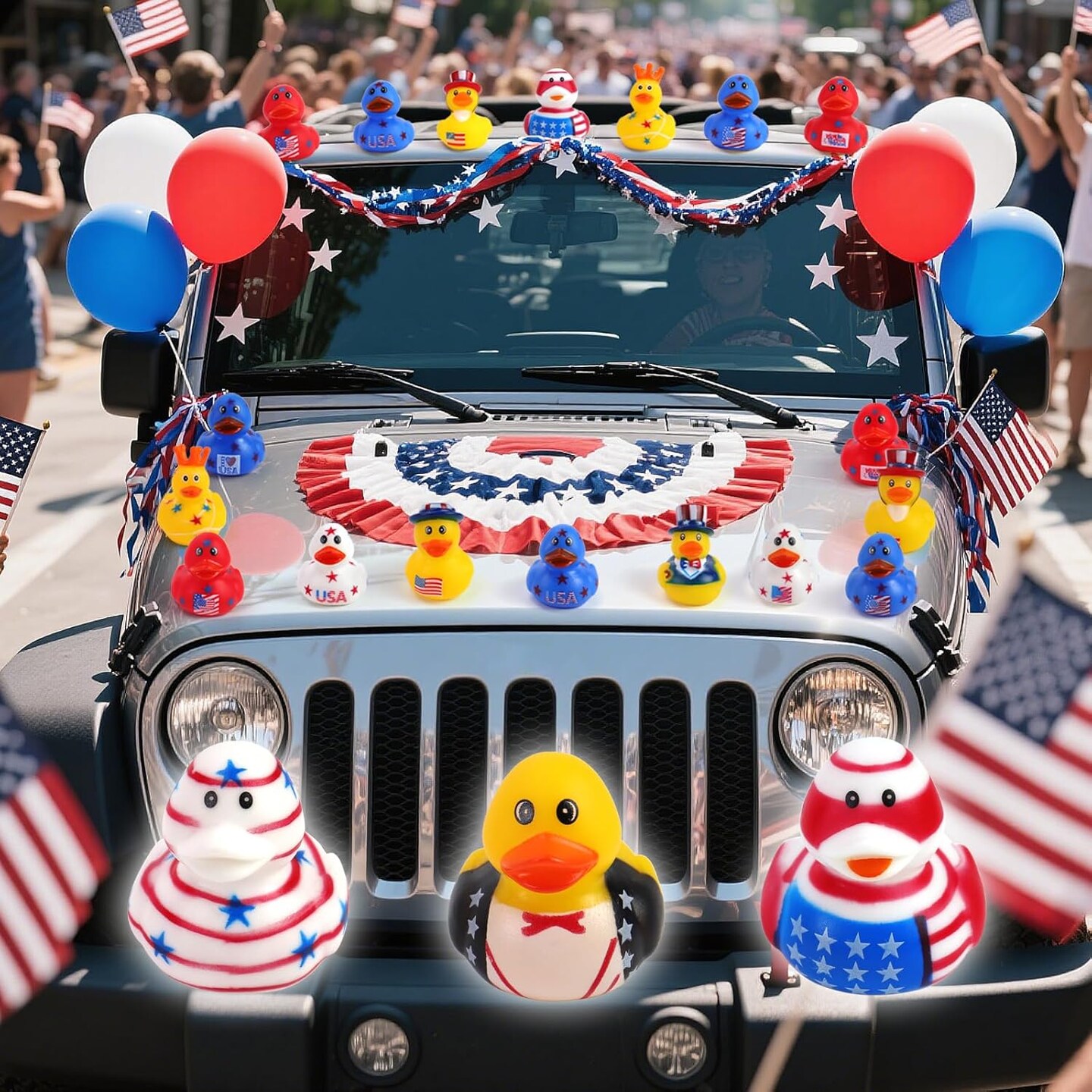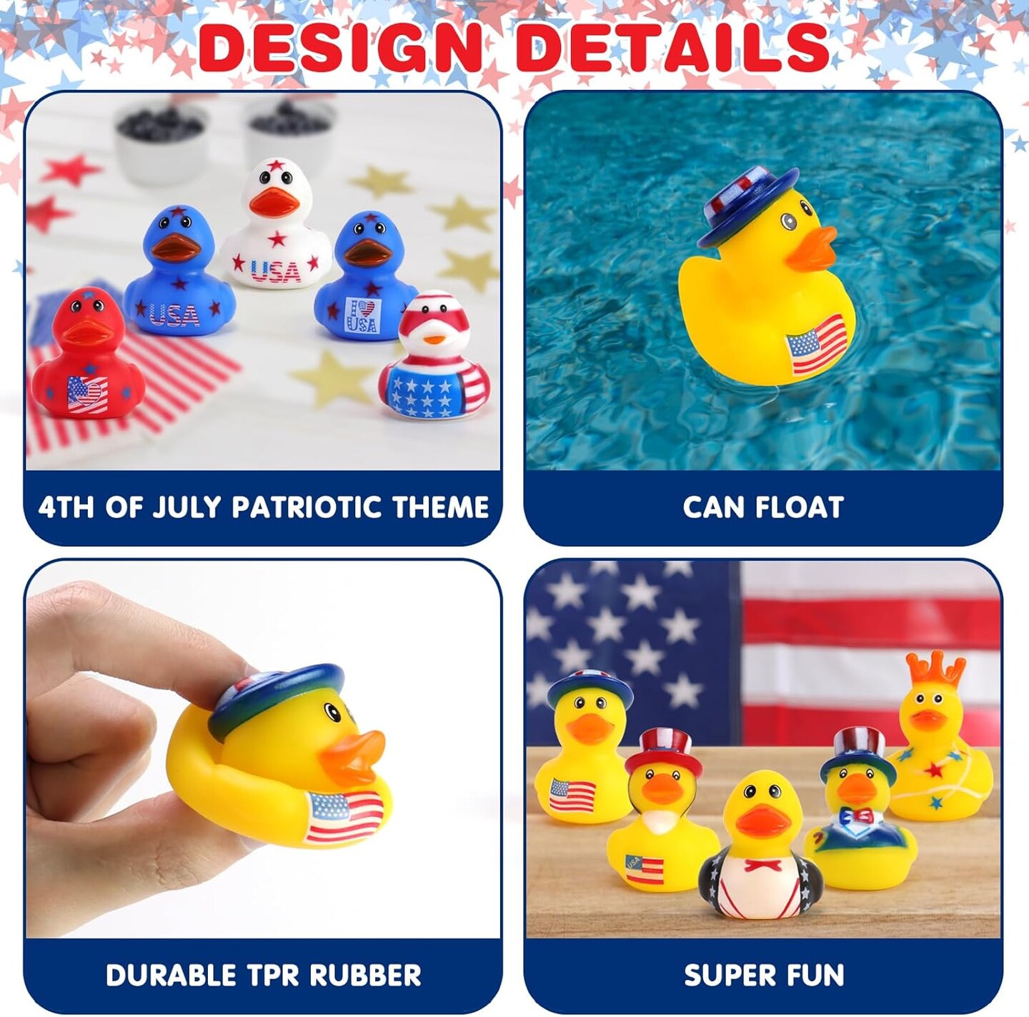 36Pcs Patriotic Rubber Ducks for Kids - 4th of July Gifts Cute Ducks for Jeeps Party Favors