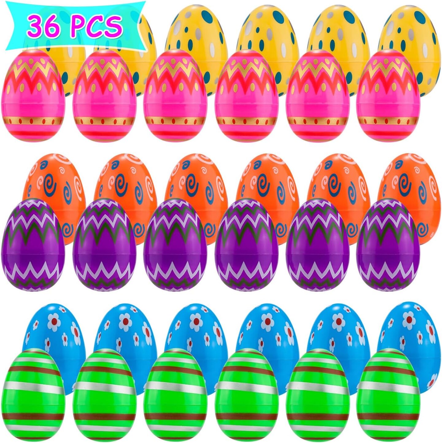 36PCS Printed Plastic Easter Eggs – Bright & Colorful Fillable Eggs for Easter Egg Hunts, Basket Stuffers, Party Favors & Surprise Treats