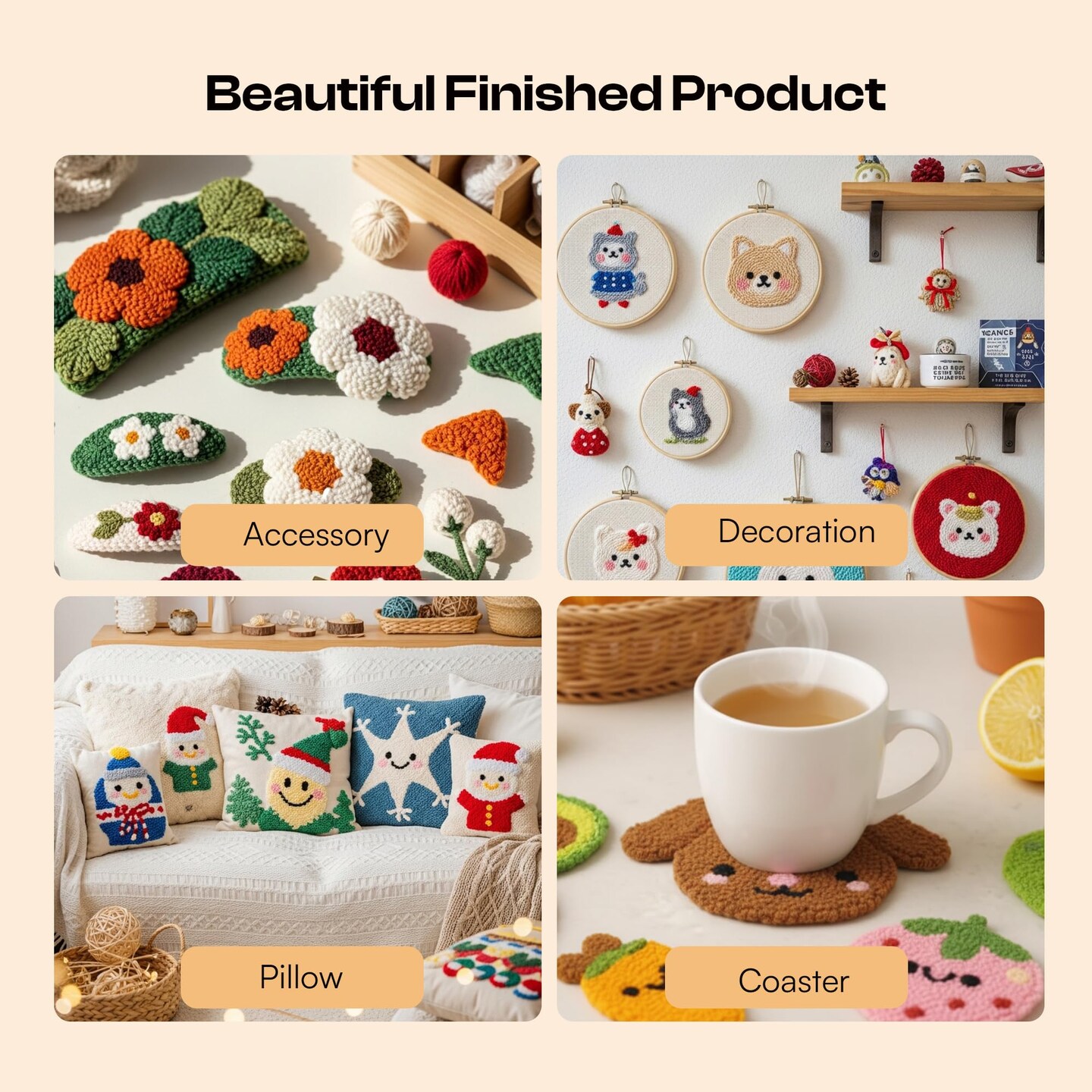 36PCS Punch Needle Kit for DIY Embroidery - Punch Needle with Finger Cots, Wooden Handles, Storage Bag, Ideal for Punch Needle Kits Adults Beginner