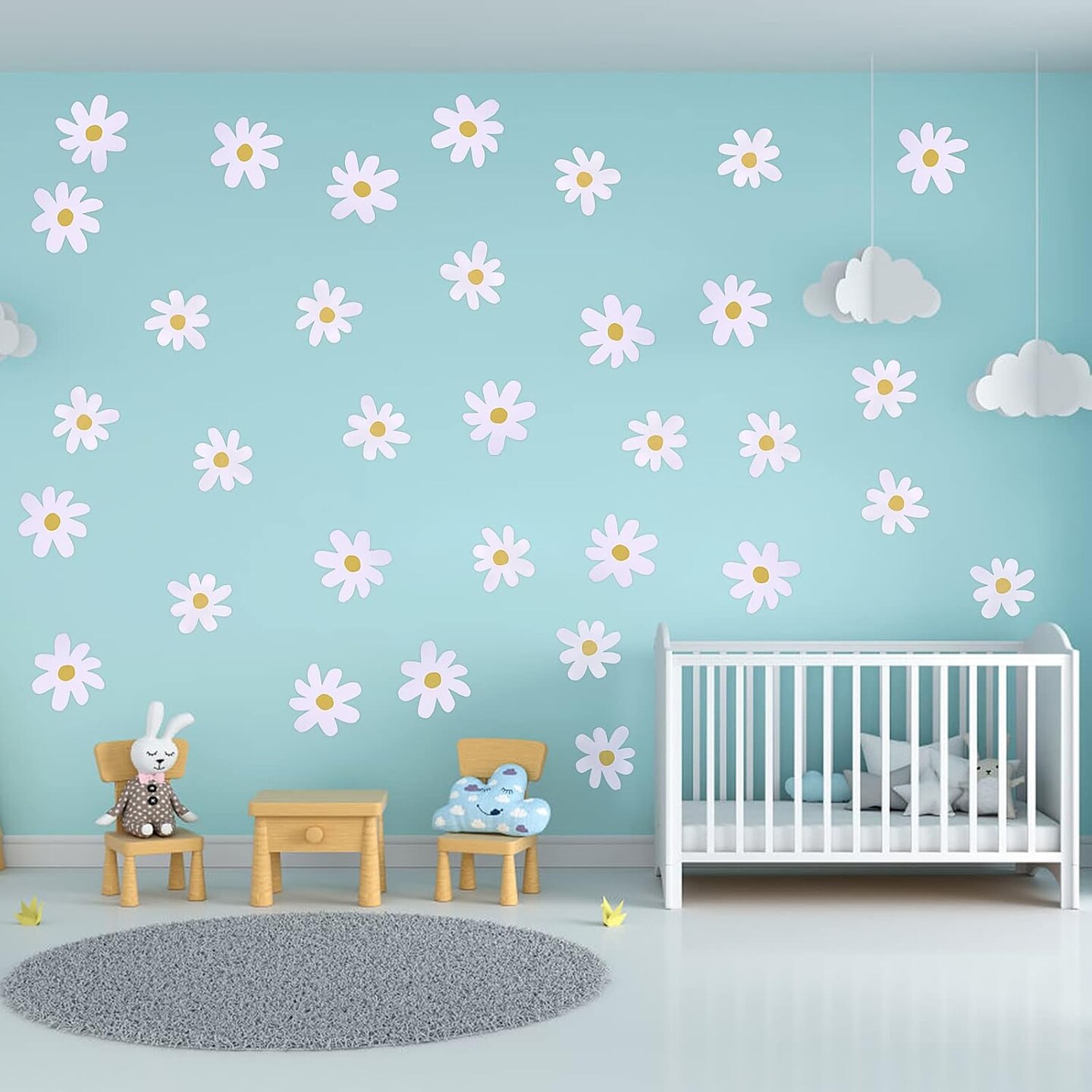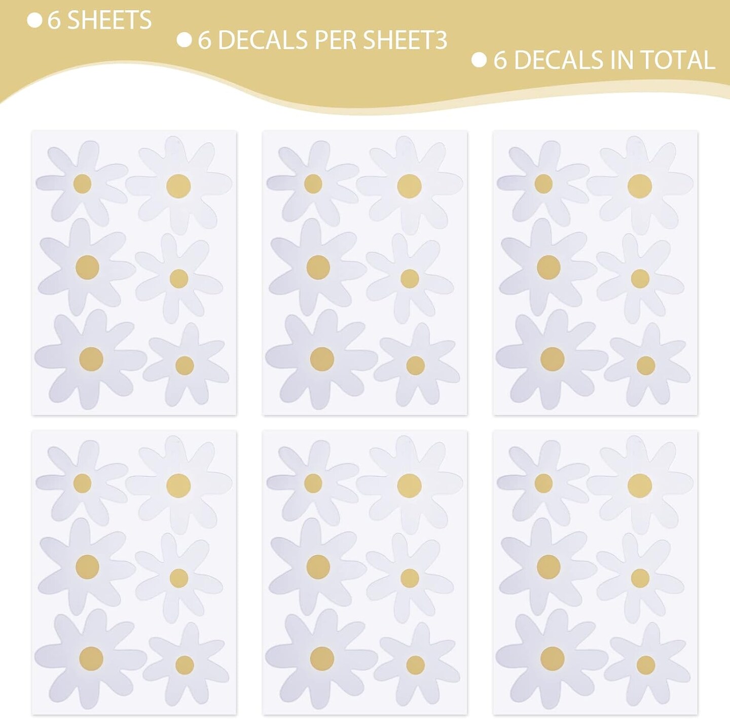 36PCS Retro White Daisy Flower Wall Stickers, Waterproof & Reusable Vinyl Wall Floral Decals (White)