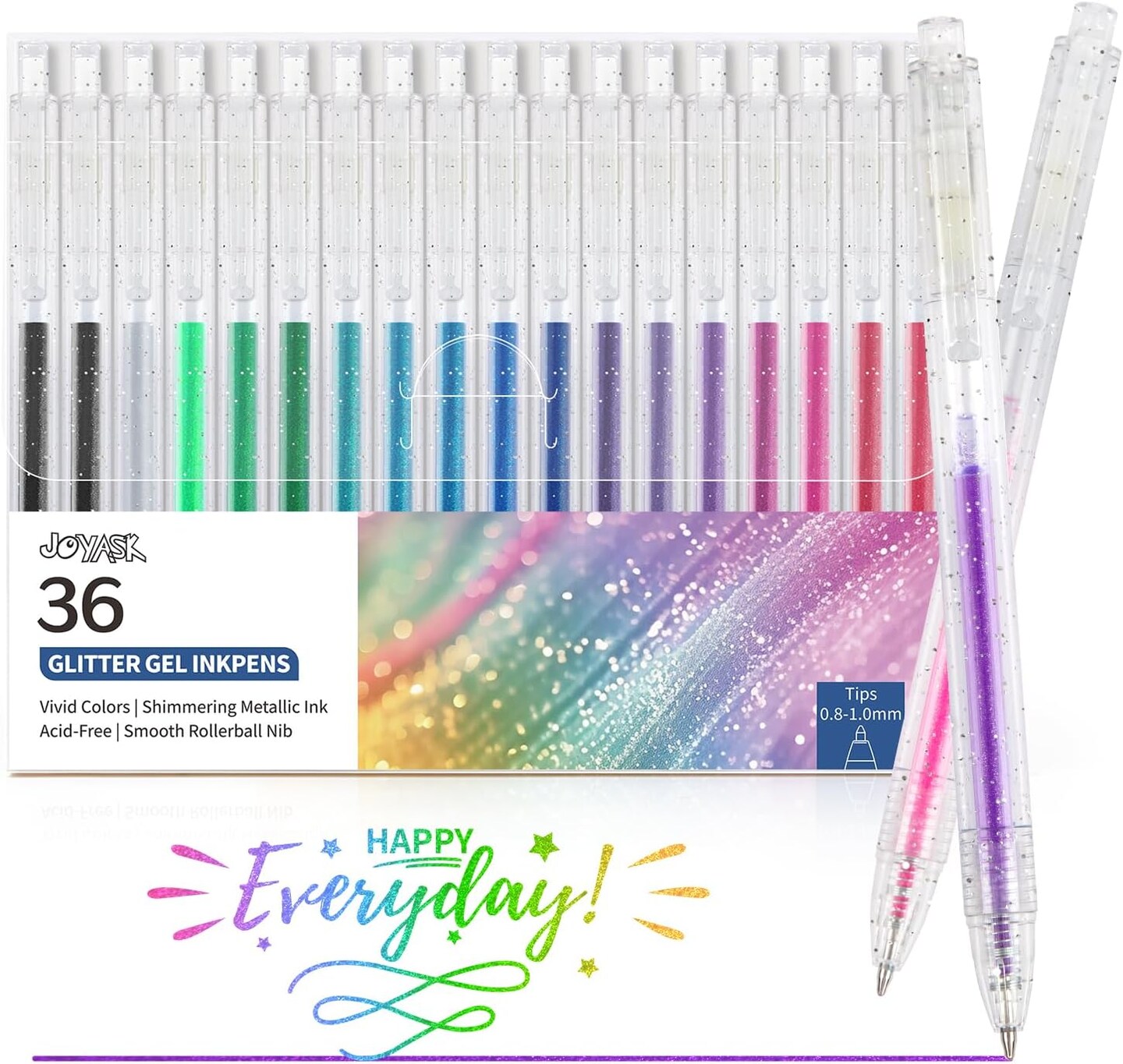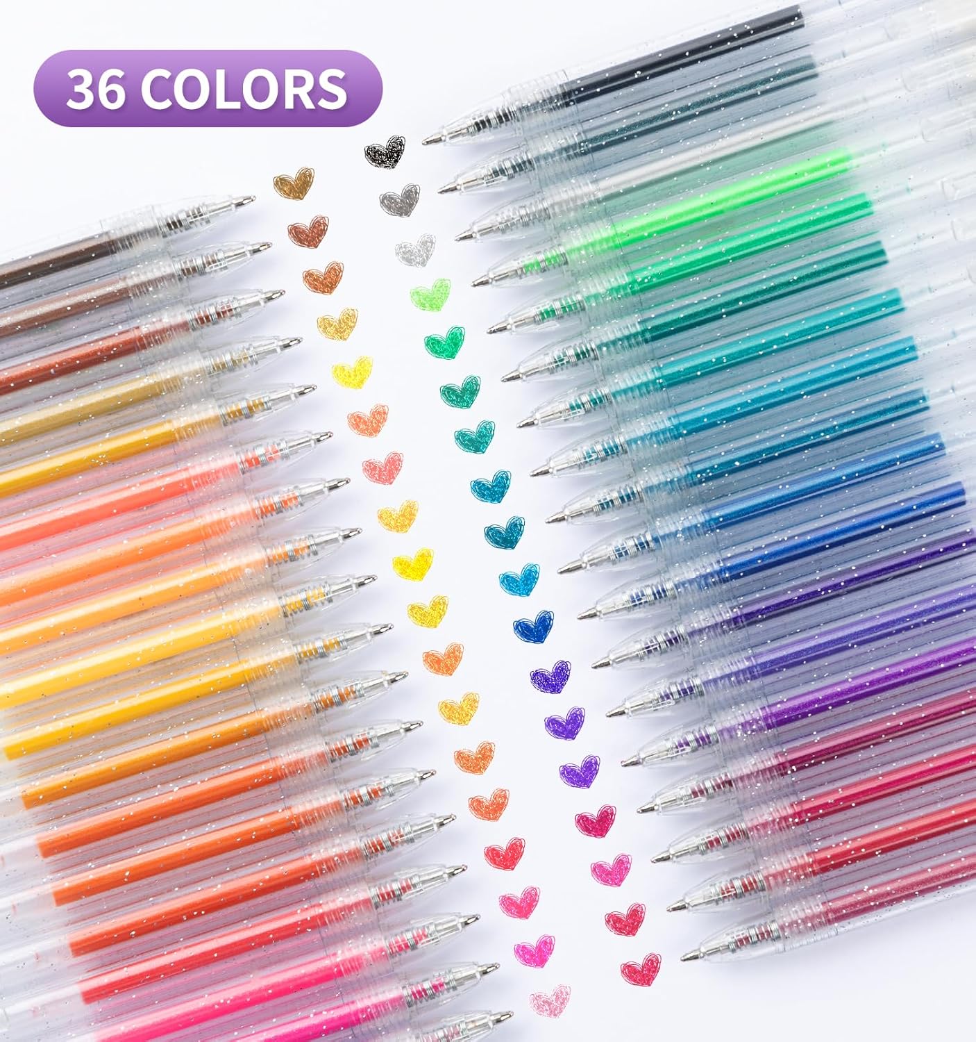 36-Piece Glitter Gel Pens, Metallic Retractable, 0.8–1mm for Coloring & Journaling