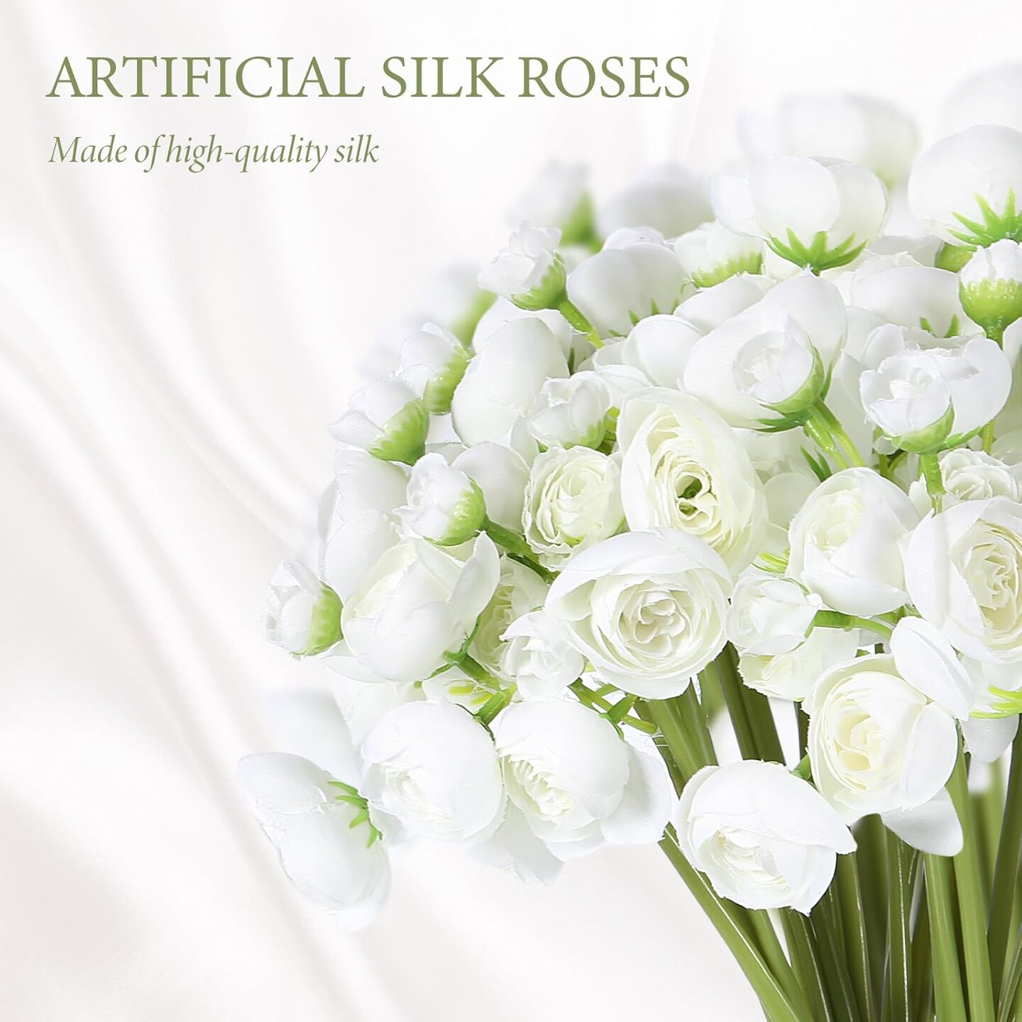 36-Piece Ivory White Artificial Ranunculus Flowers – Faux Silk Mini Peonies with Long Stems for DIY Wedding Bouquets, Centerpieces & Home Decor