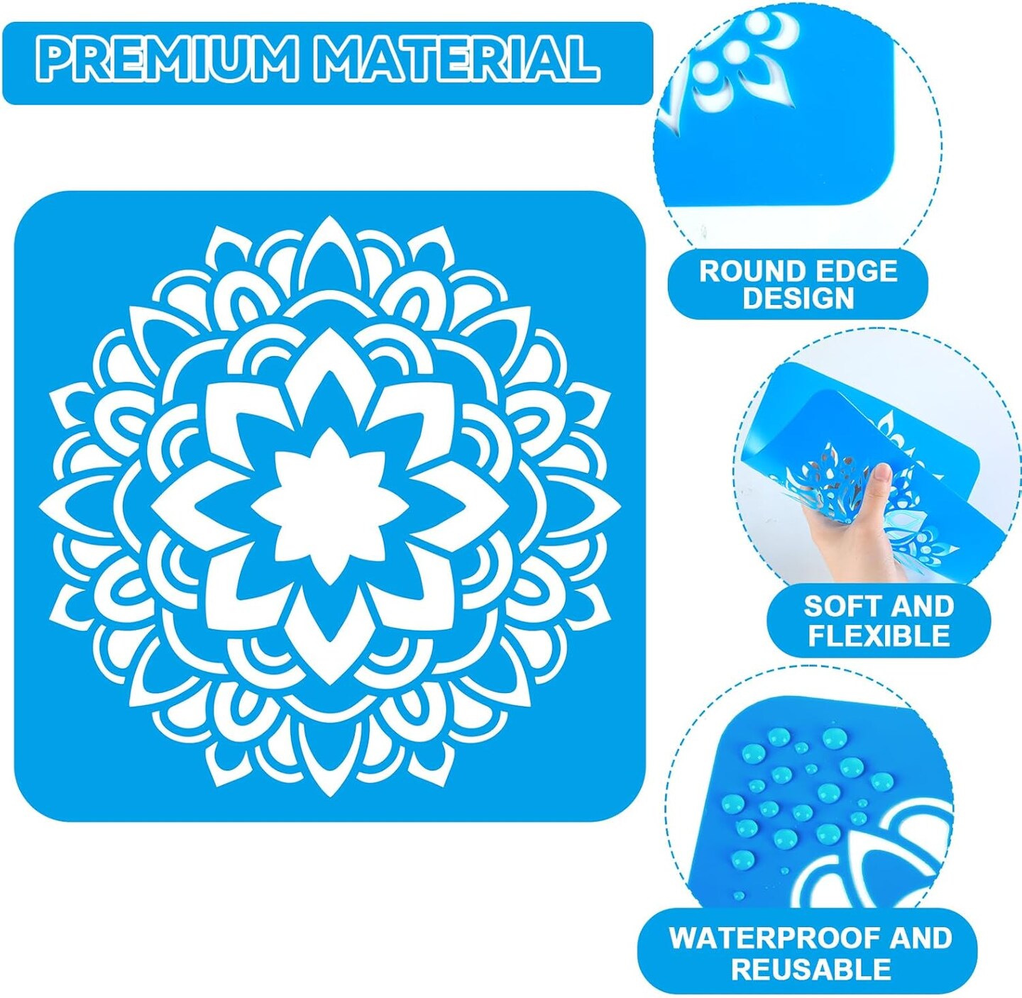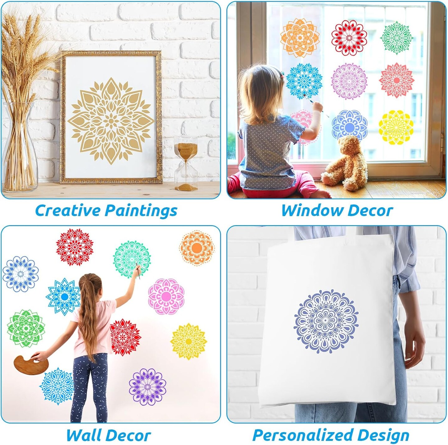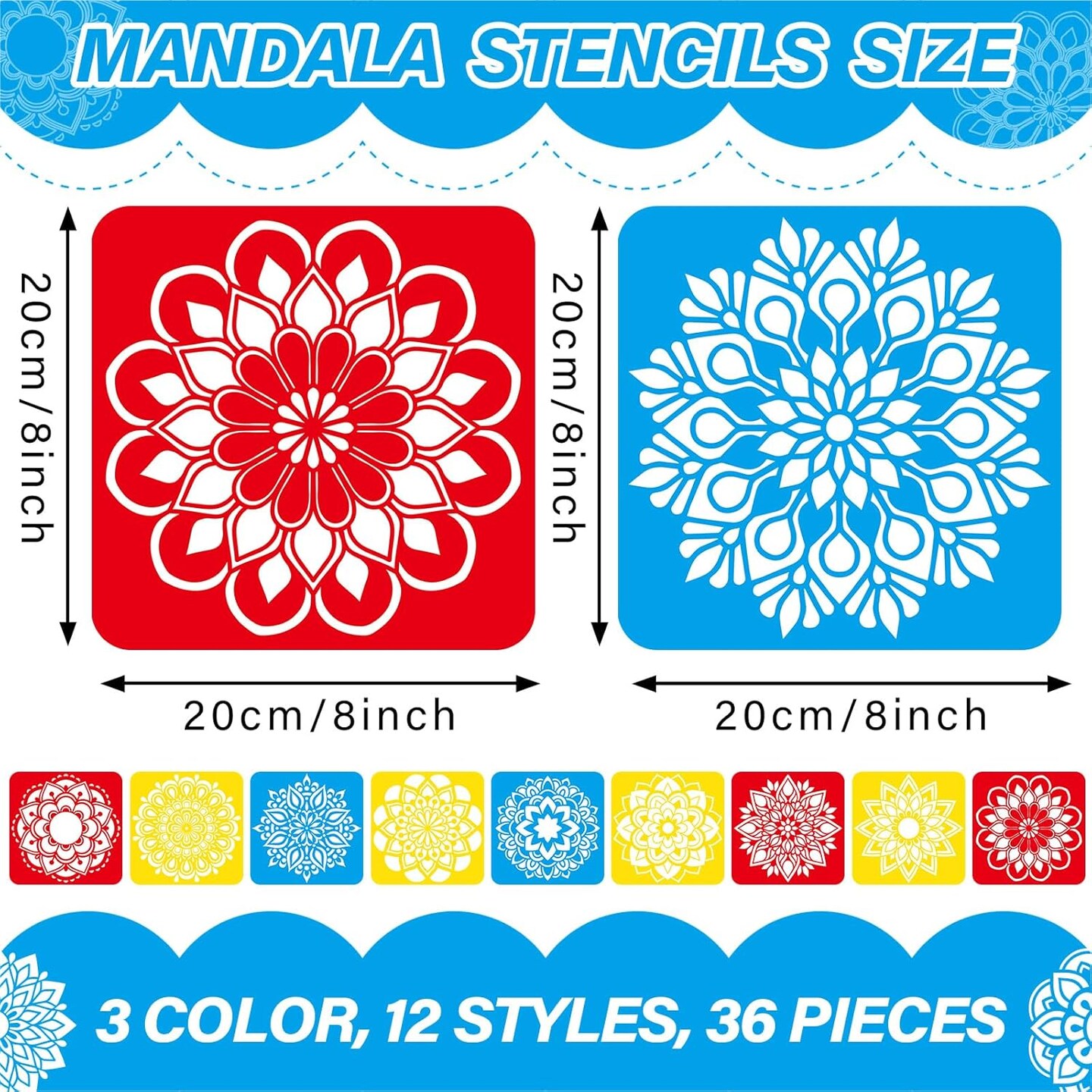 36-Piece Mandala Drawing Stencils – 8x8 in Reusable Sidewalk Chalk & Painting Templates for Kids, DIY Crafts, Floors, Fabric & Home Decor