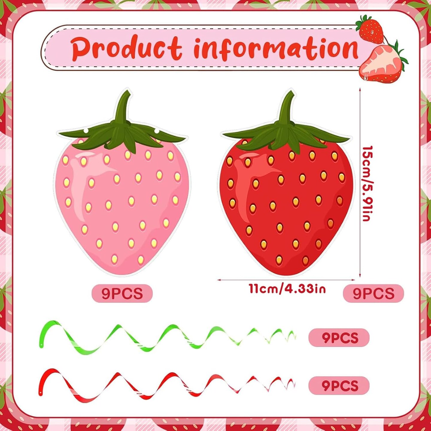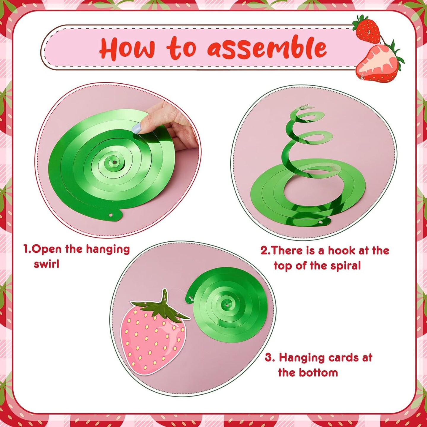 36-Piece Strawberry Hanging Swirl Banner Set | Berry First Birthday Decorations, Colorful Foil Ceiling Danglers for Strawberry Party & Baby Shower Supplies