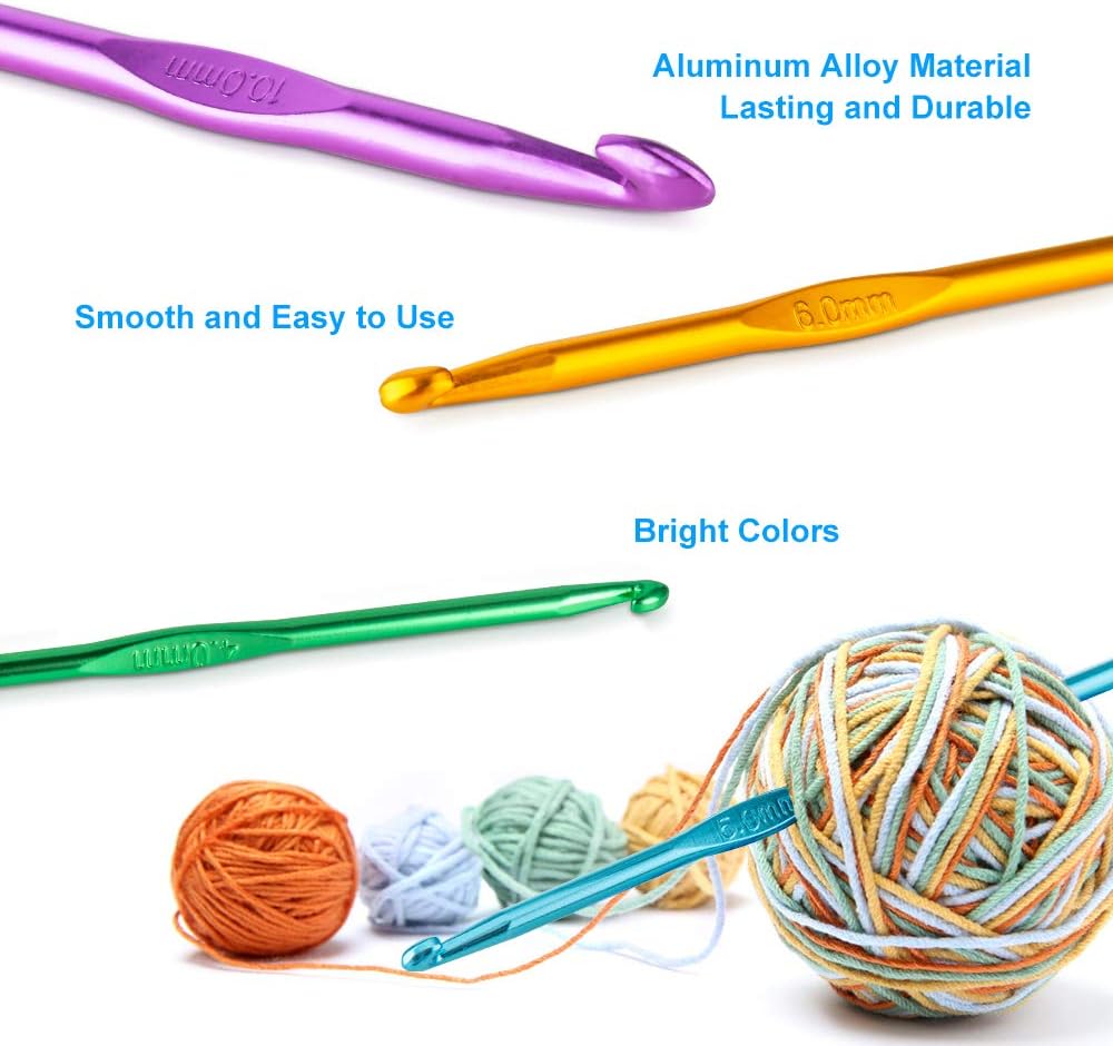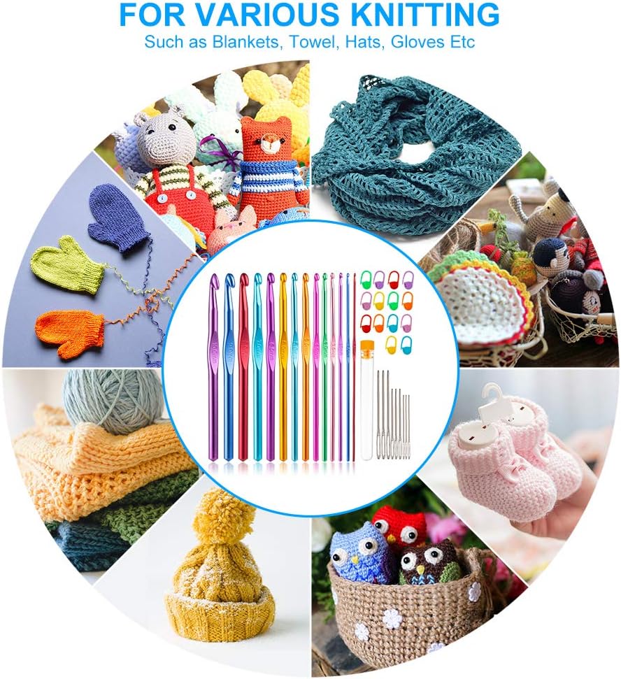 37 PCS Crochet Hooks Set, High Quality Coloured Aluminum Ergonomic Handle Crochet, Hook Needles for Arthritic Hands, with Stitch Markers and Large-Eye Blunt Needles