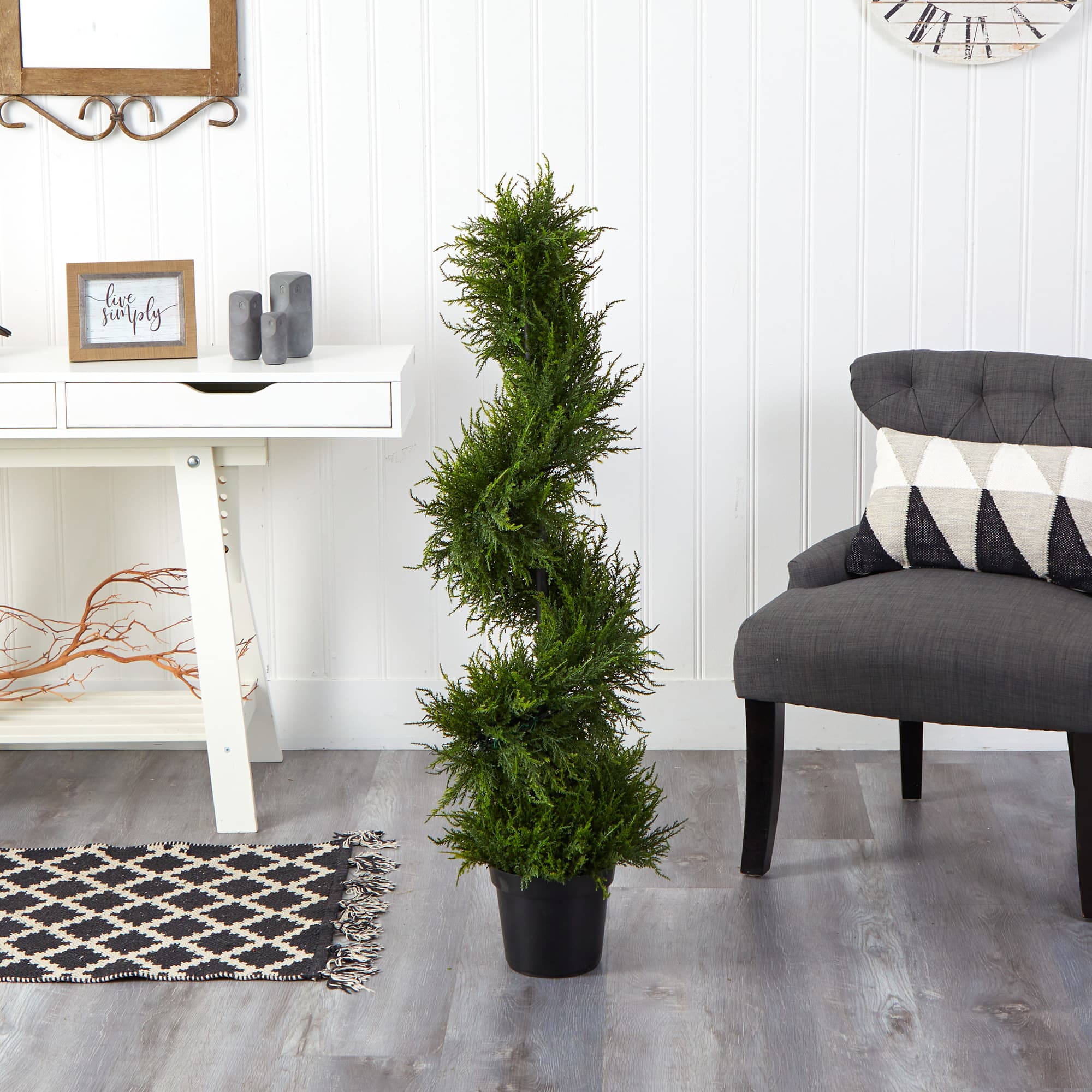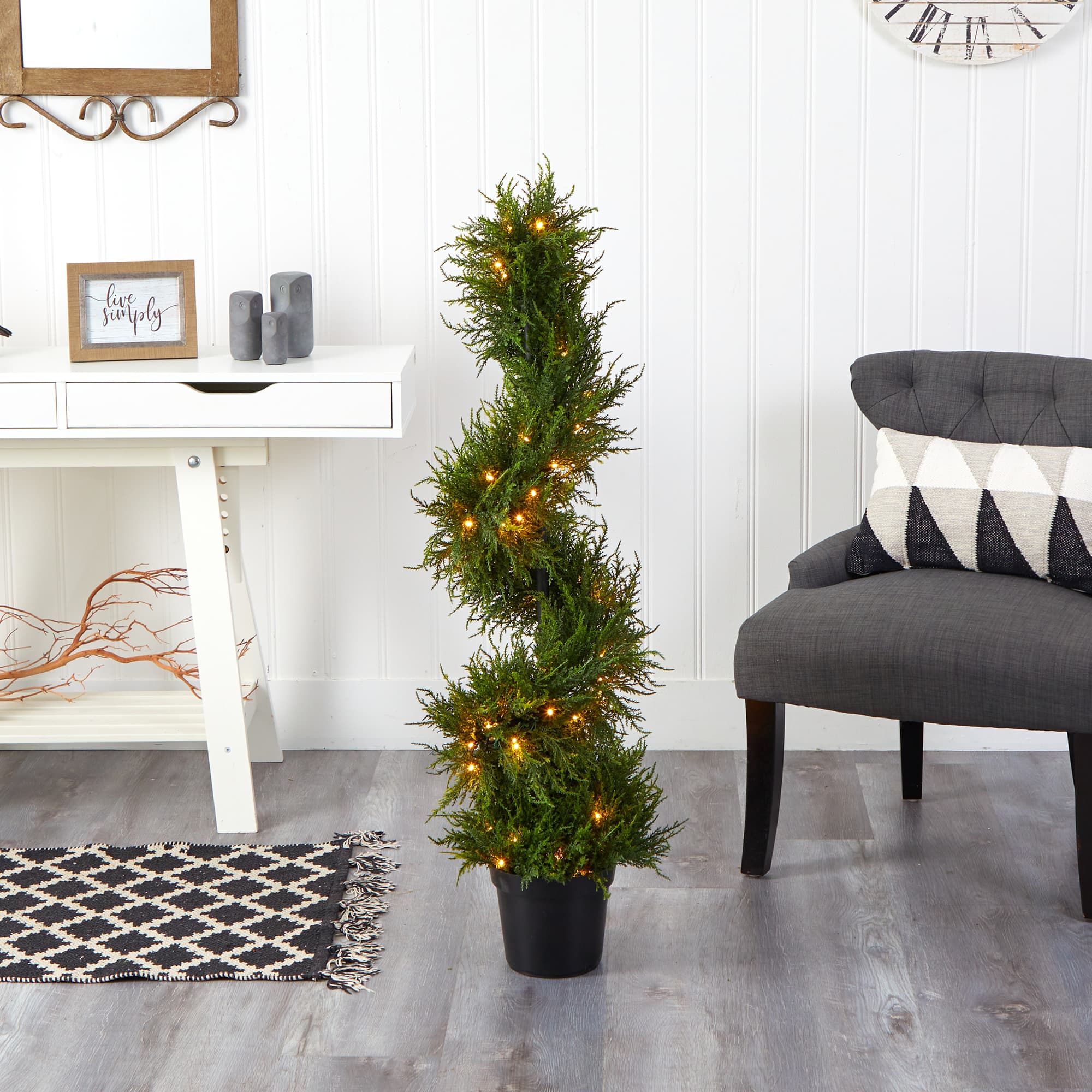3.75ft. Pre-Lit Spiral Cypress Artificial Potted Tree, Clear LED Lights