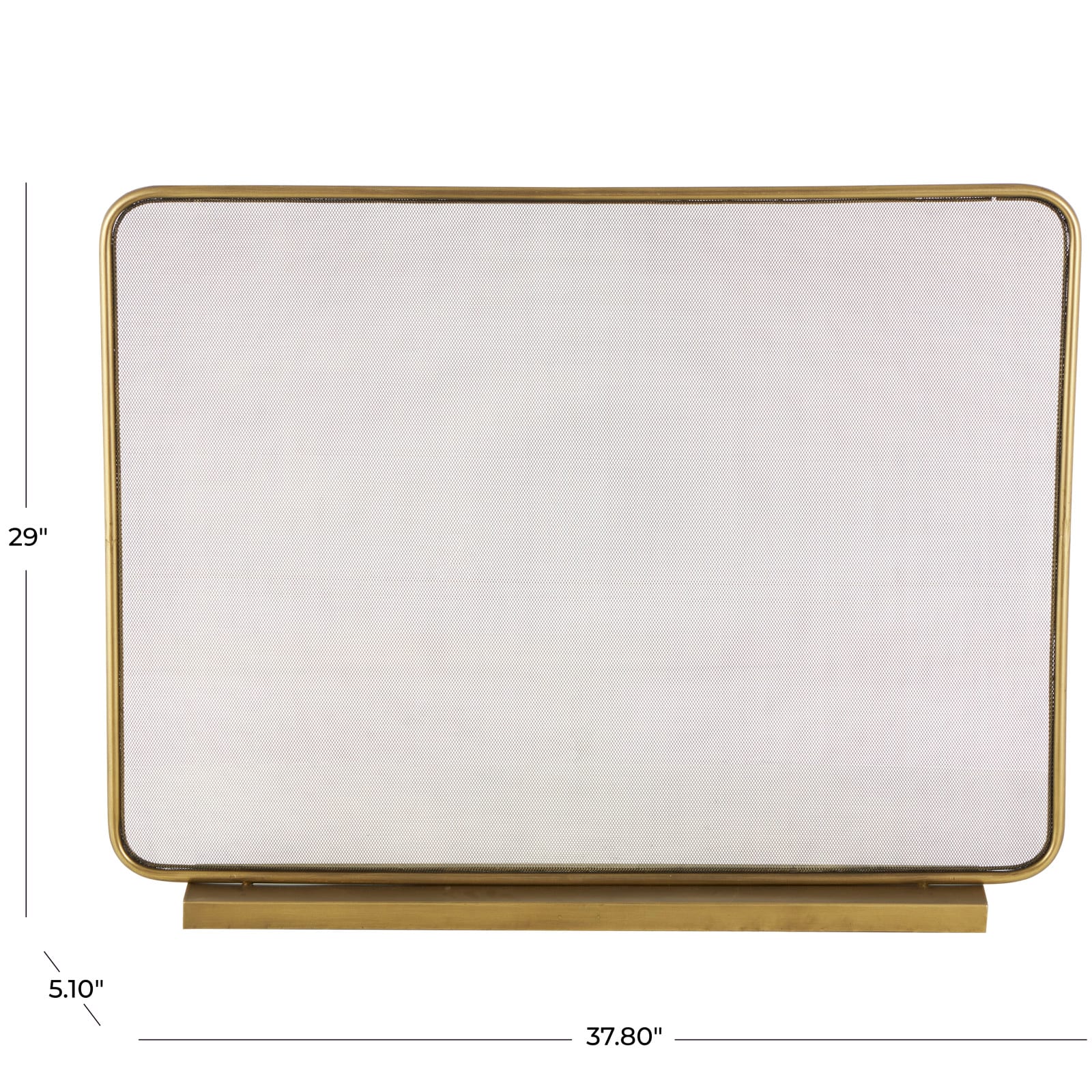 37.75" Gold Metal 1-Panel Living Room Fireplace Screen with Rounded Edges and Rectangular Base