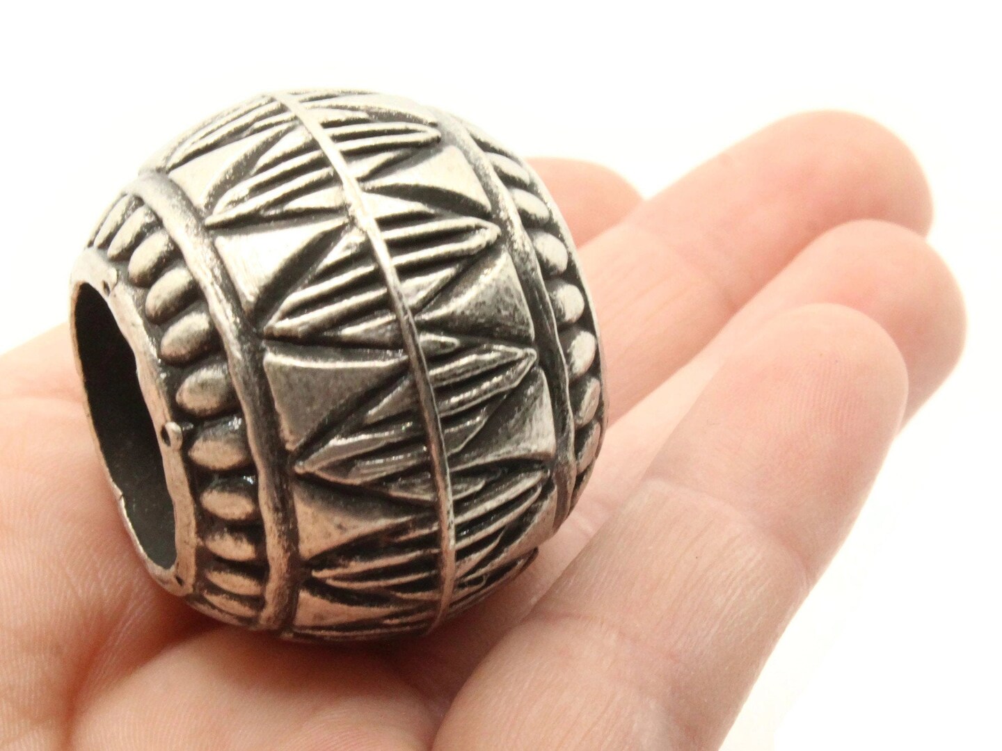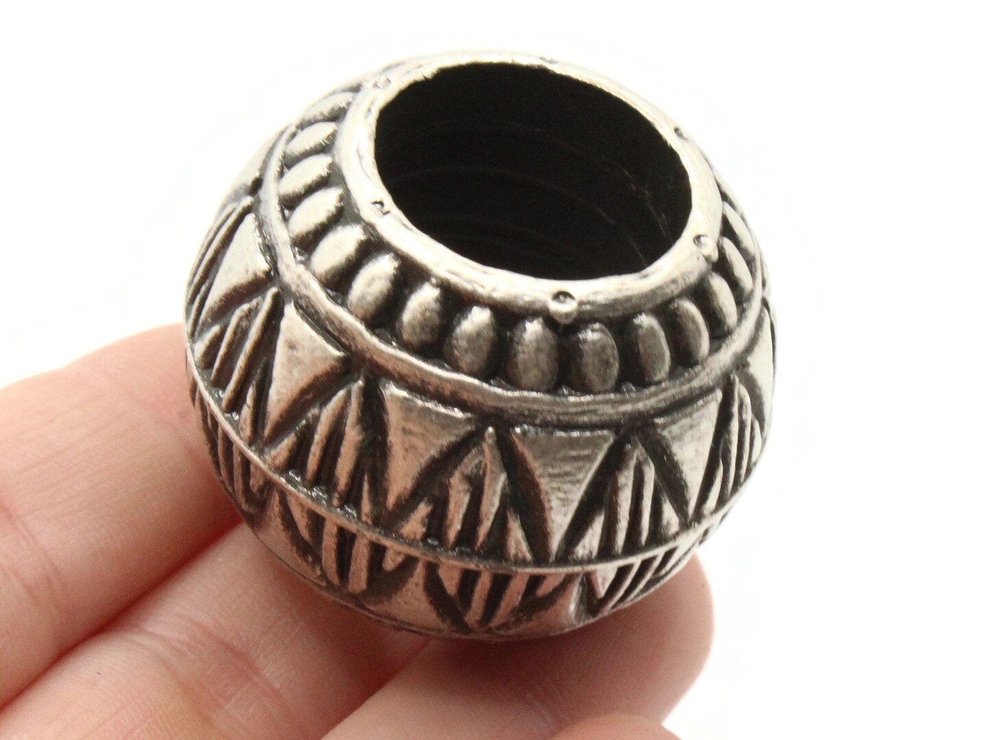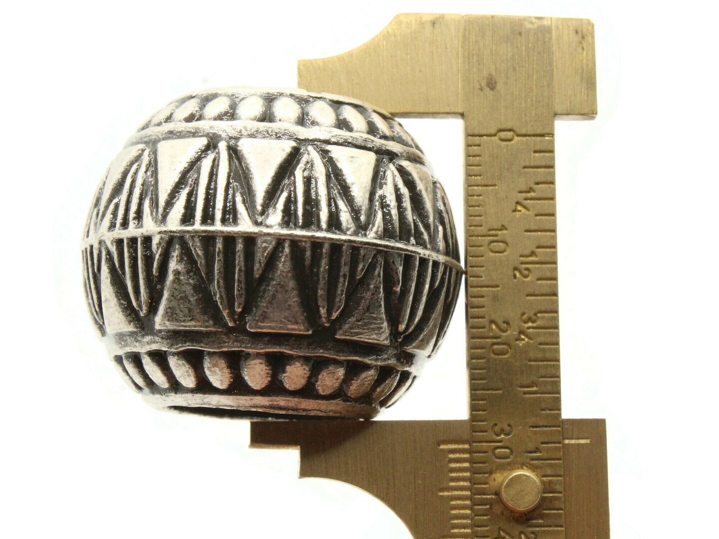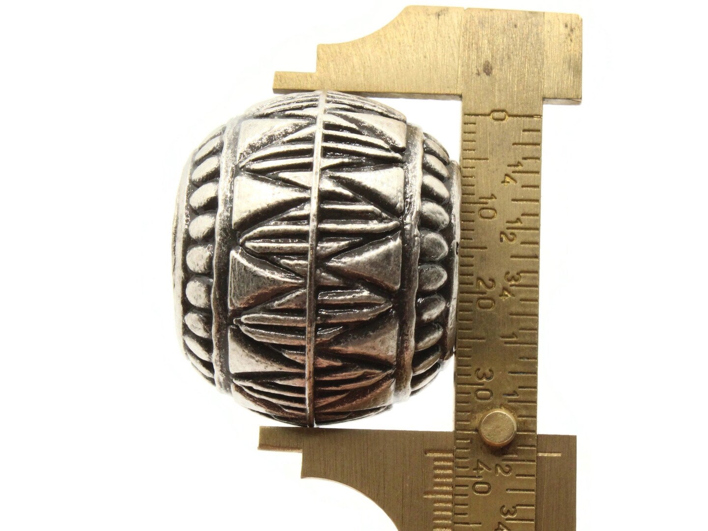 37mm x 30mm Large Round Silver-Plated Plastic Beads - Vintage Macrame Beads