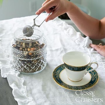 38 Ounce Round Glass Jar with Bamboo Lid - Vintage Diamond Pattern Kitchen Decorative Glass Jars - Coffee Pasta Sugar Tea Snack Nuts Cookie Jar with Airtight Lids - Set of 3