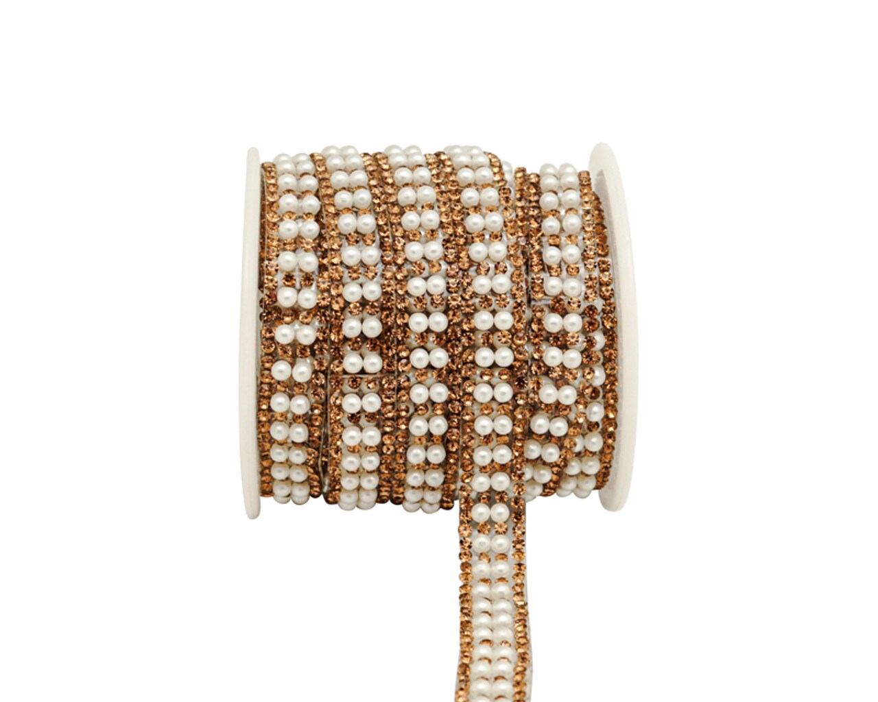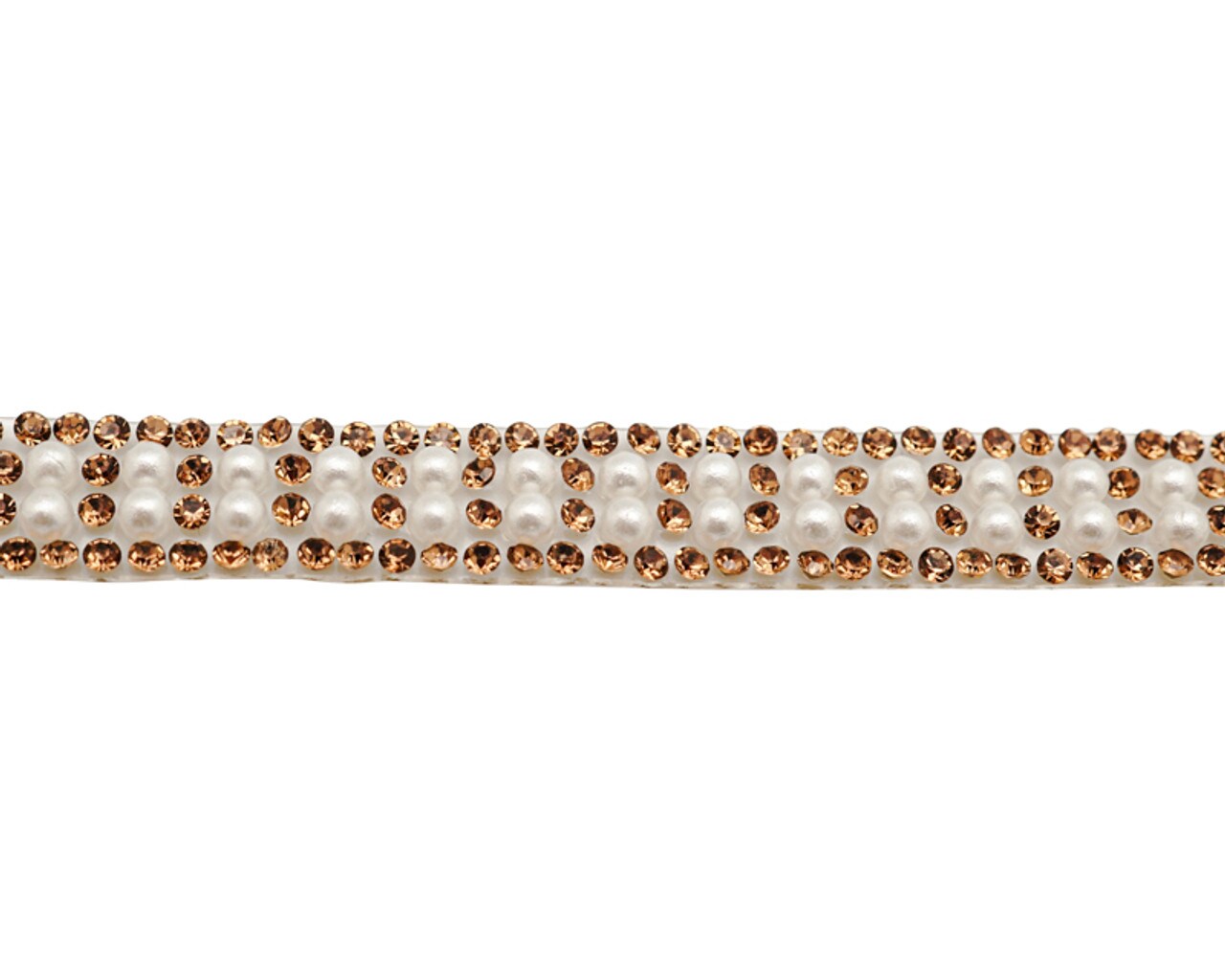 3/8" x 5 Yards Gold Crystal Faux Pearl Cluster Iron-On Rhinestone Trim