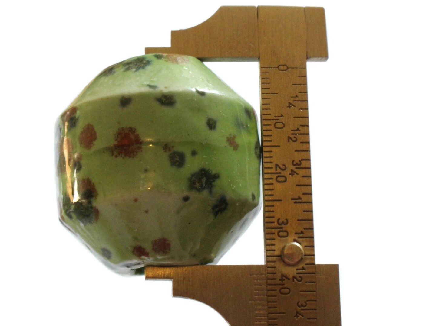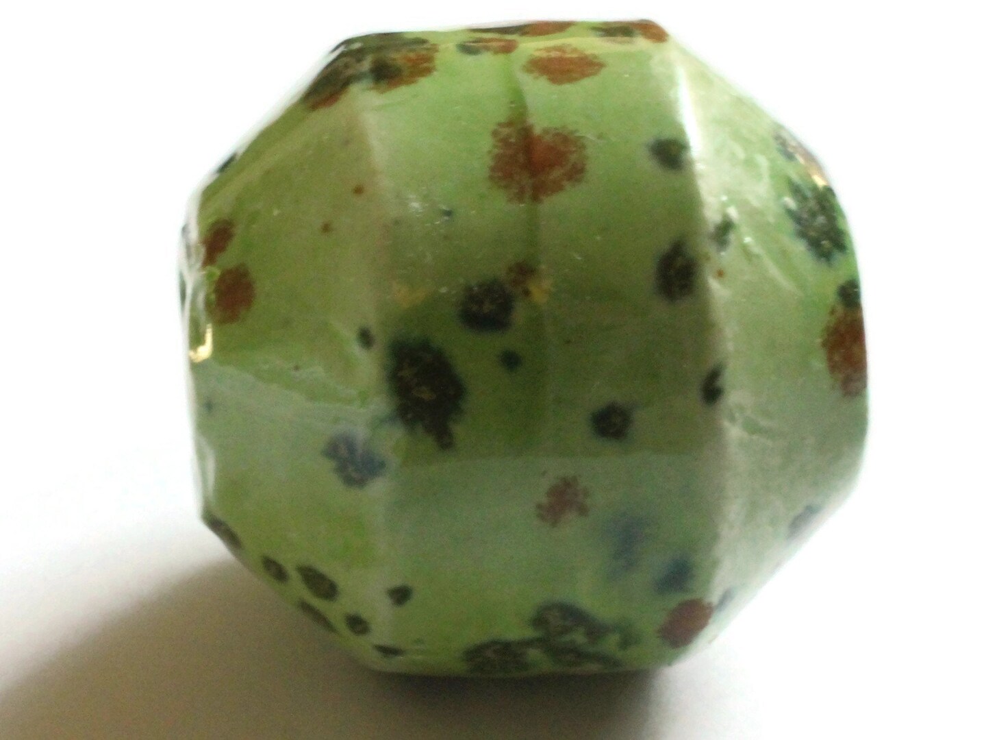 38mm Green with Brown and Green Spots Banded Round Bead Vintage Ceramic Macrame Bead