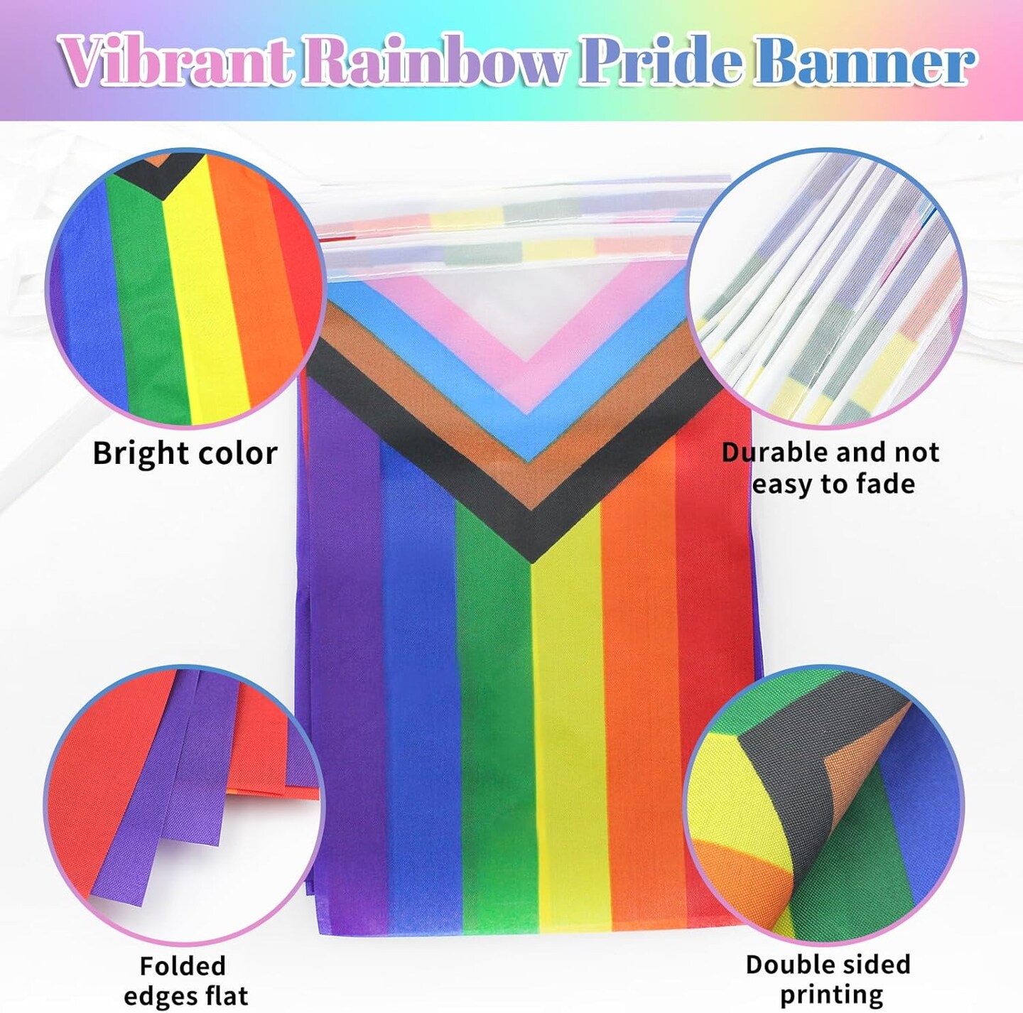 38PCS/50Feet Progress Pride Flags Banner, LGBTQ Pride Rainbow Bunting with String for Garden Bar, Pride Banner Decorations for Outdoor Indoor Party Decoration Celebrating Month Events
