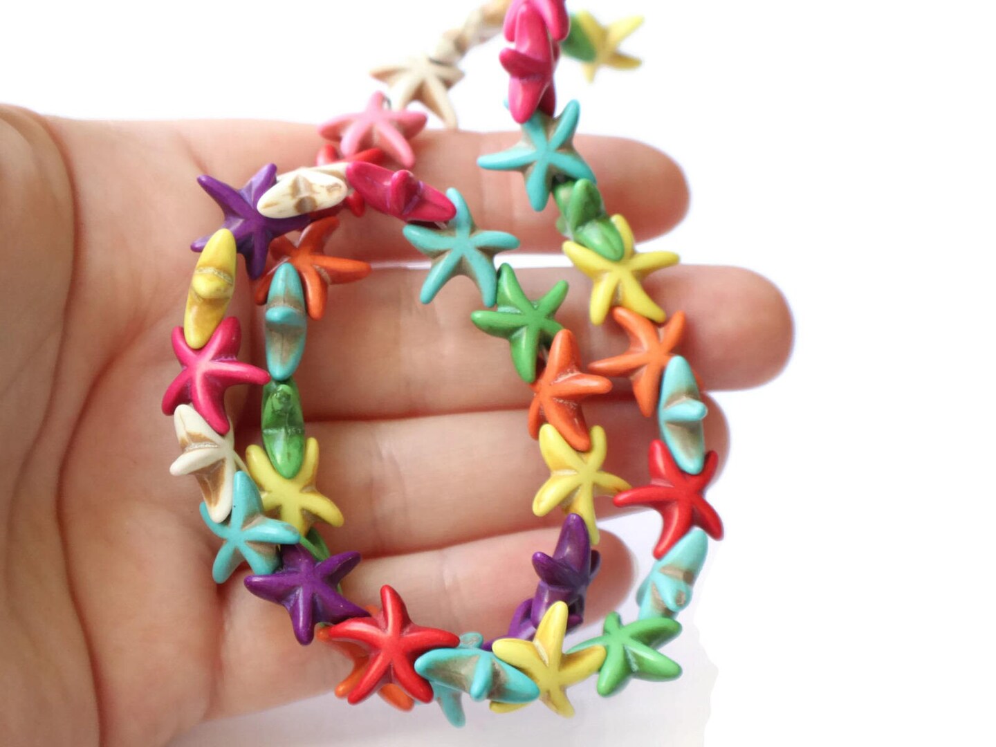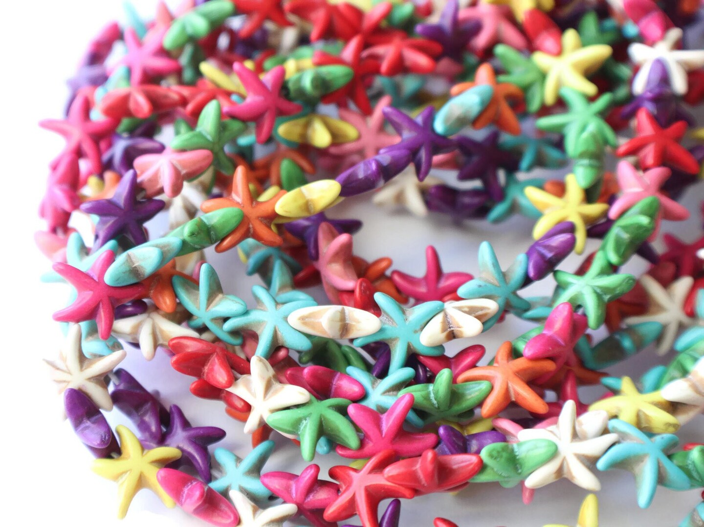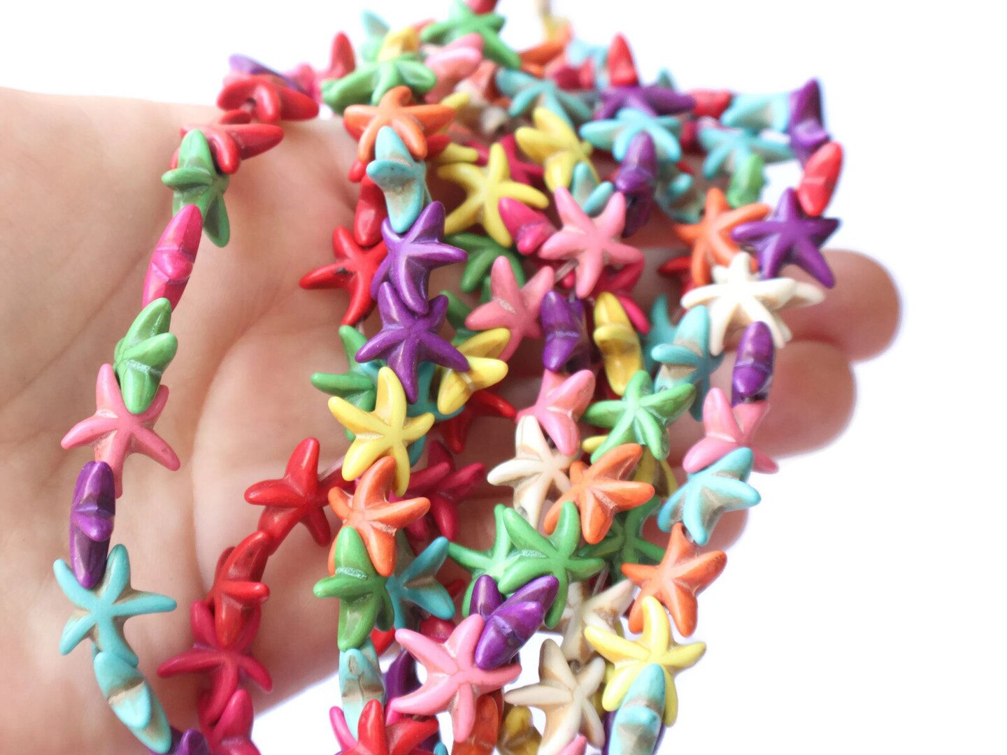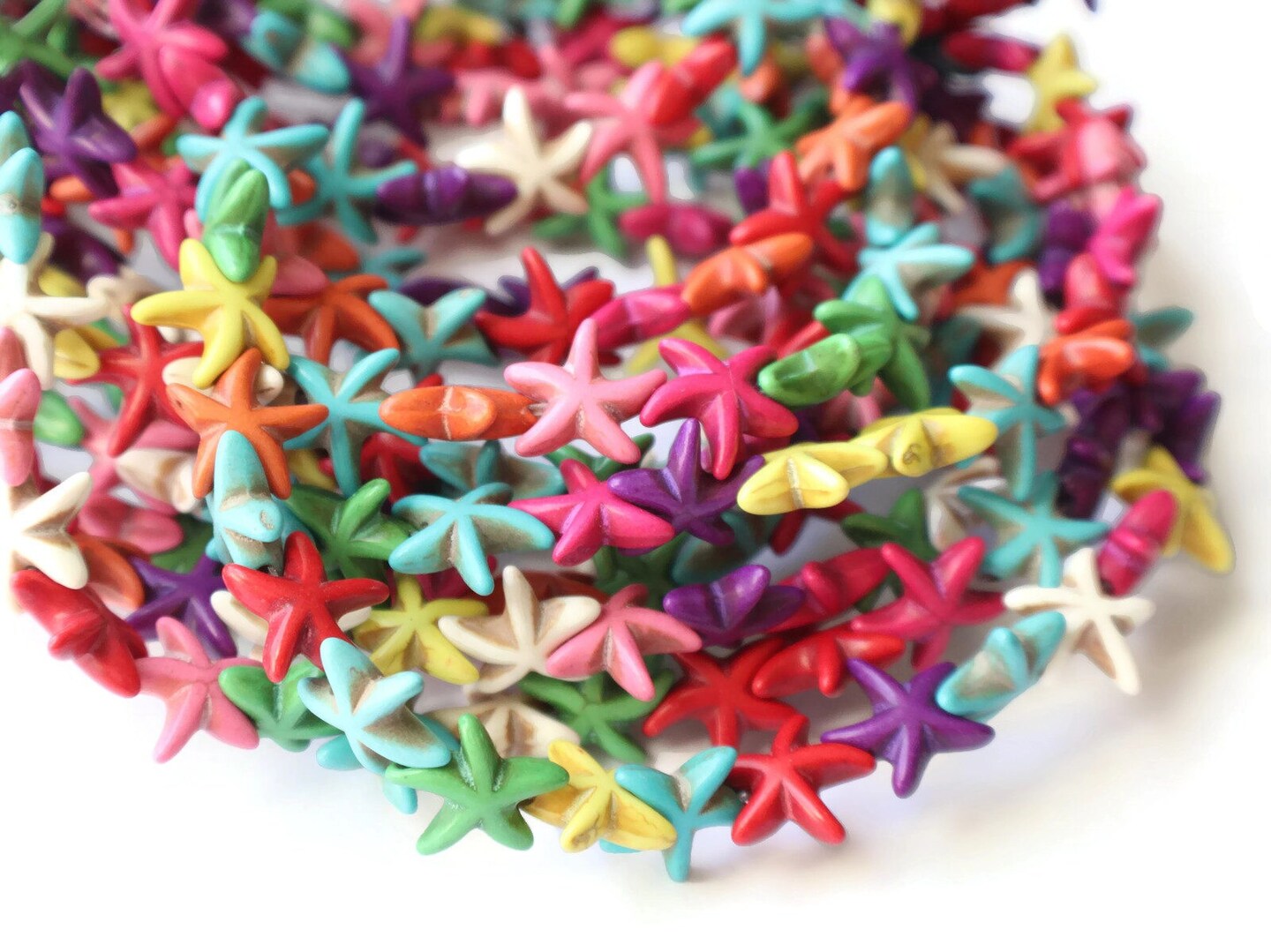 39 15mm Howlite Starfish Dyed Mixed Color Gemstone Beads