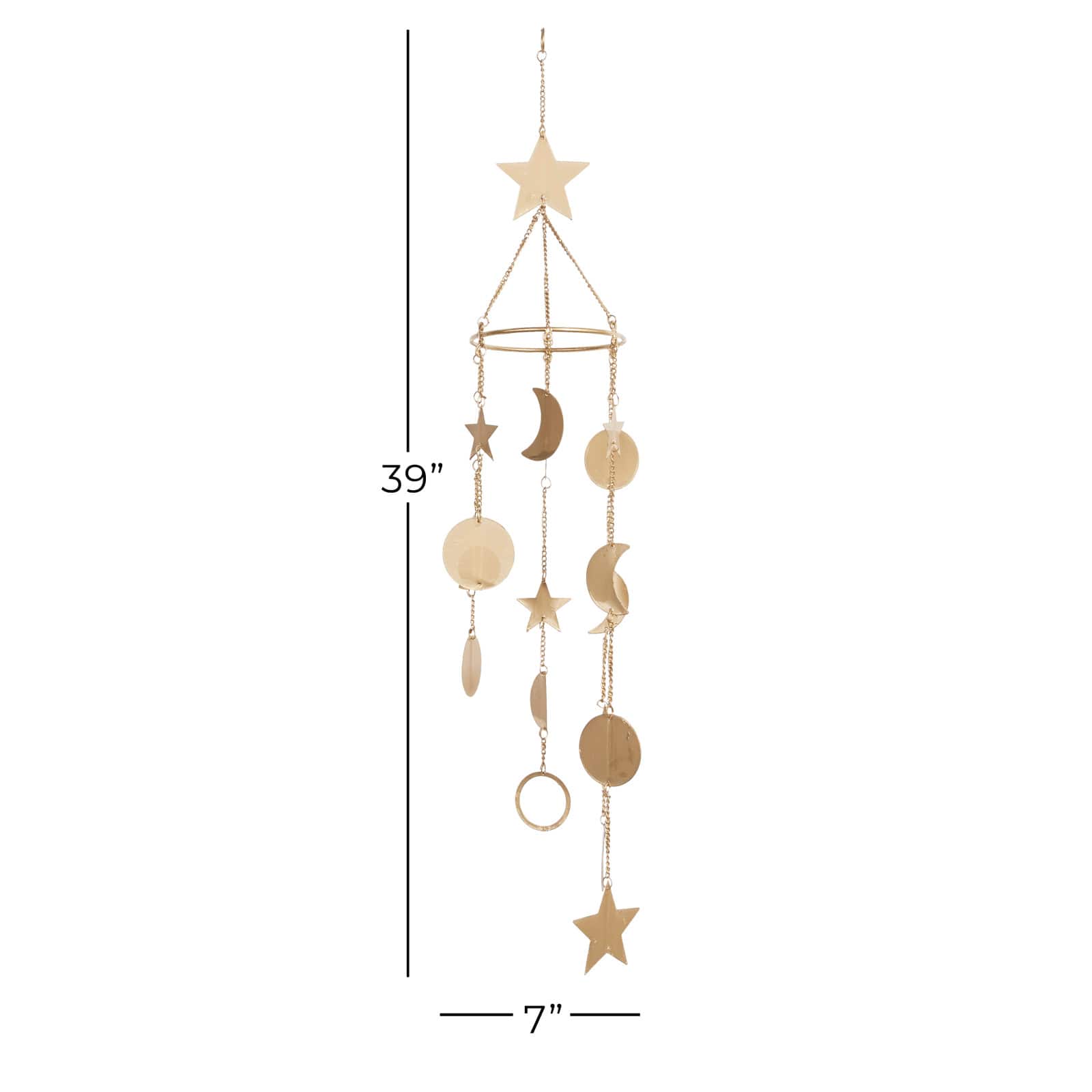 39" Gold Metal Eclectic Moon & Stars Wind Chime
