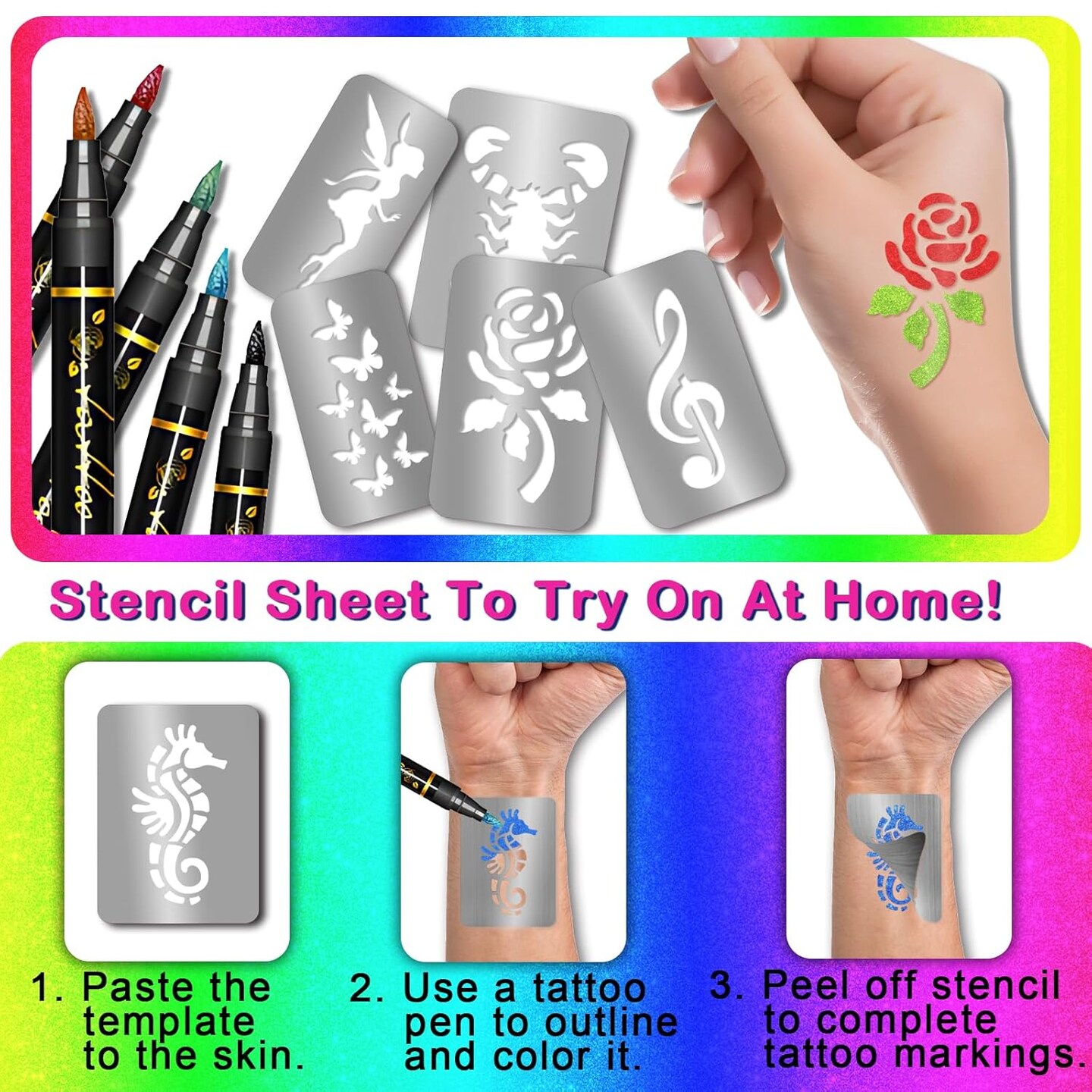 390 PCS Temporary Tattoo Stencils(28 Sheets Stencil)
