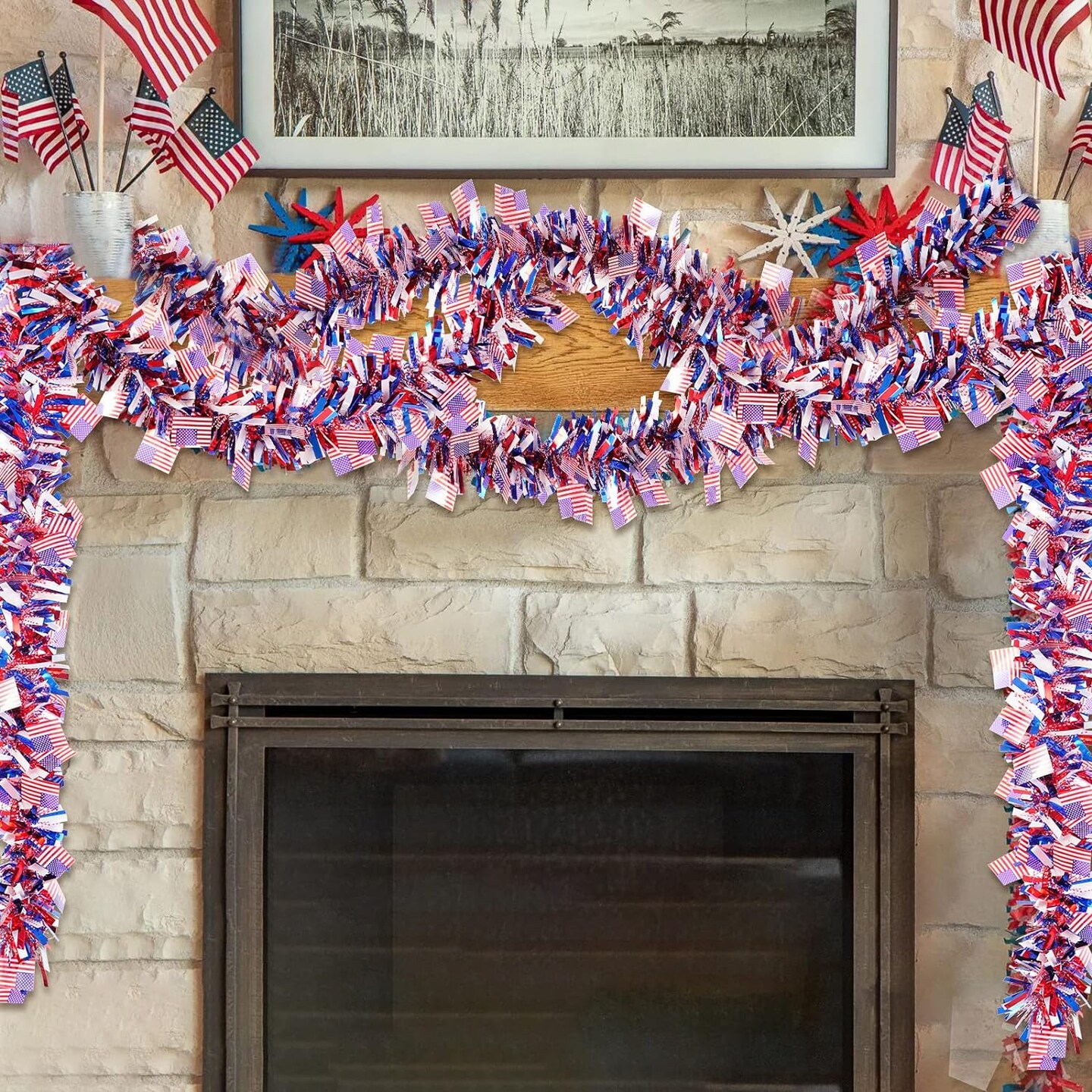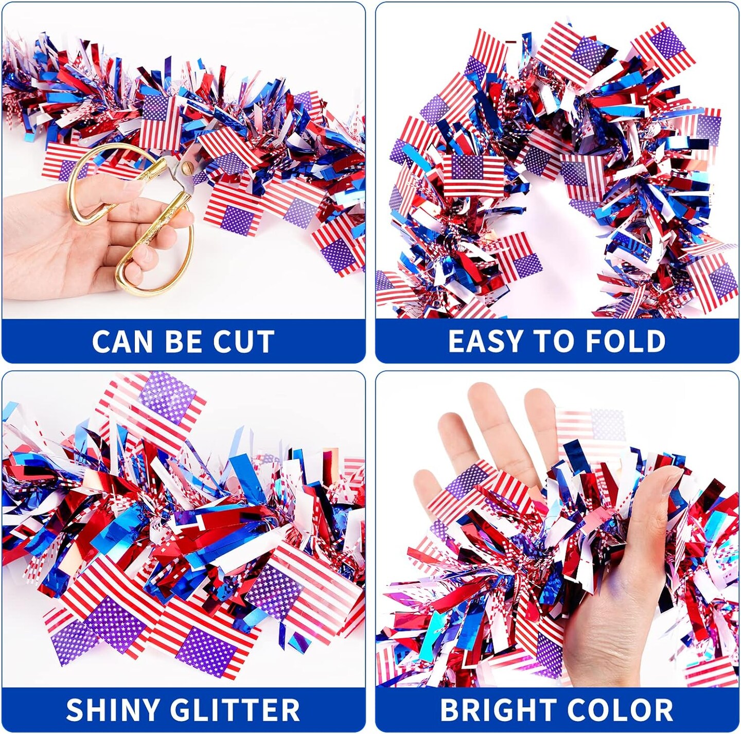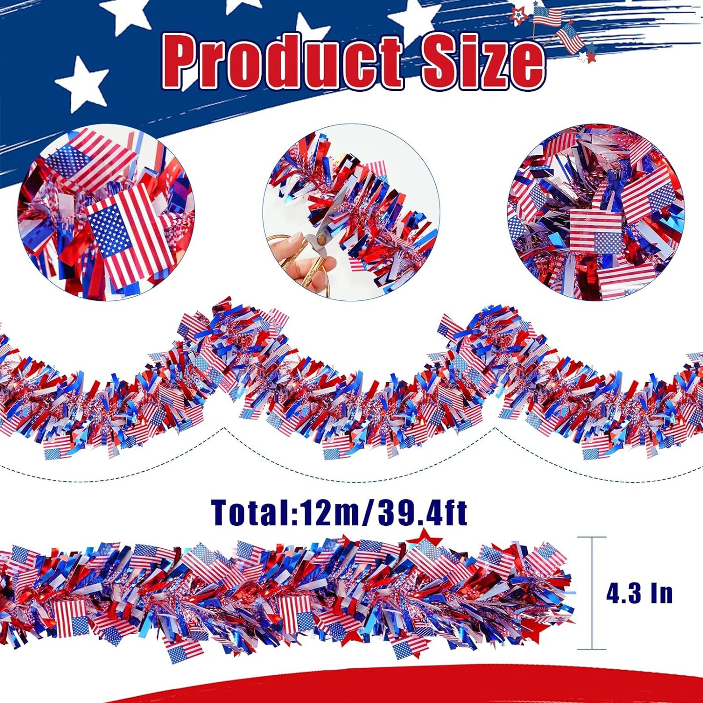 39.4 Ft 4th of July Patriotic Tinsel Garland for Memorial Day