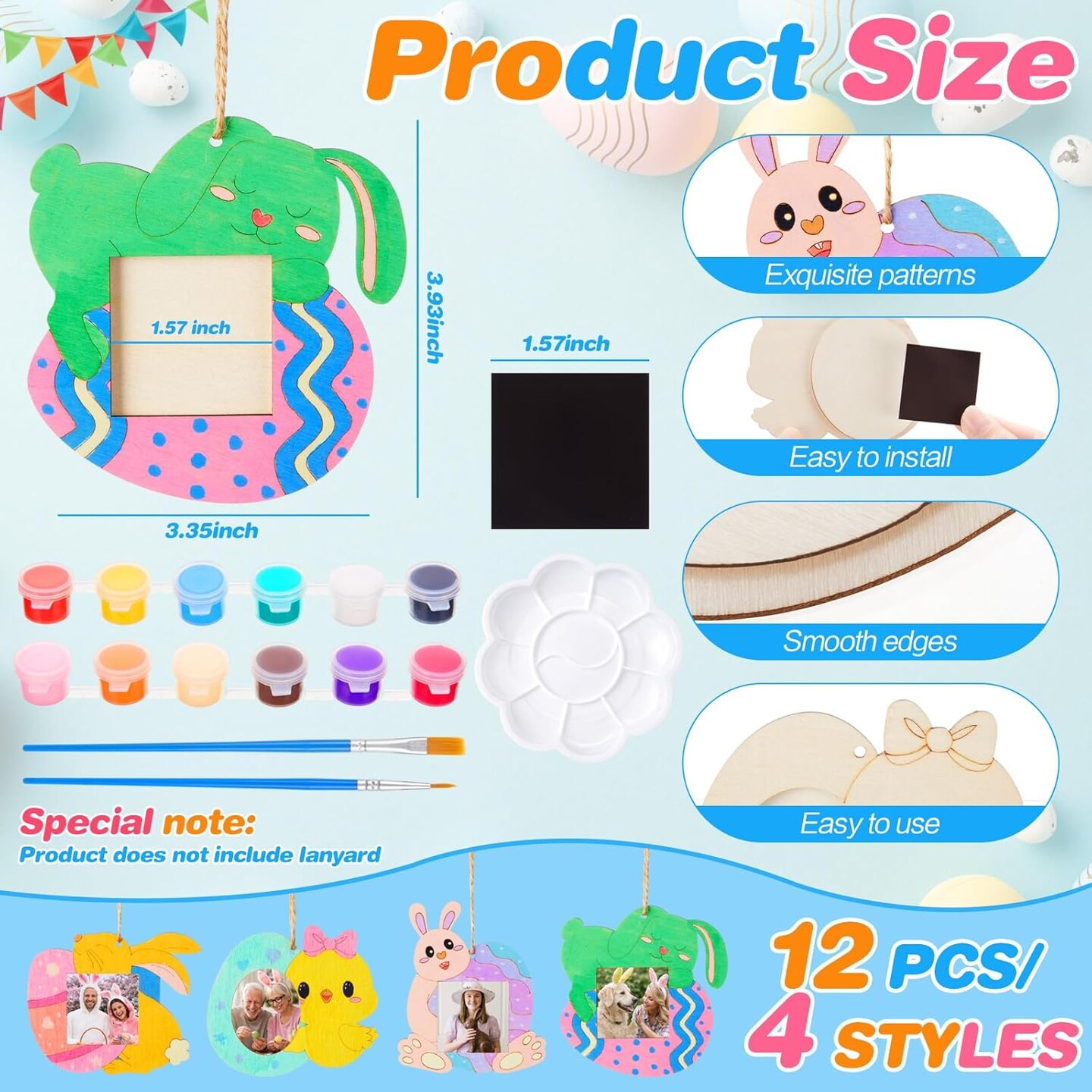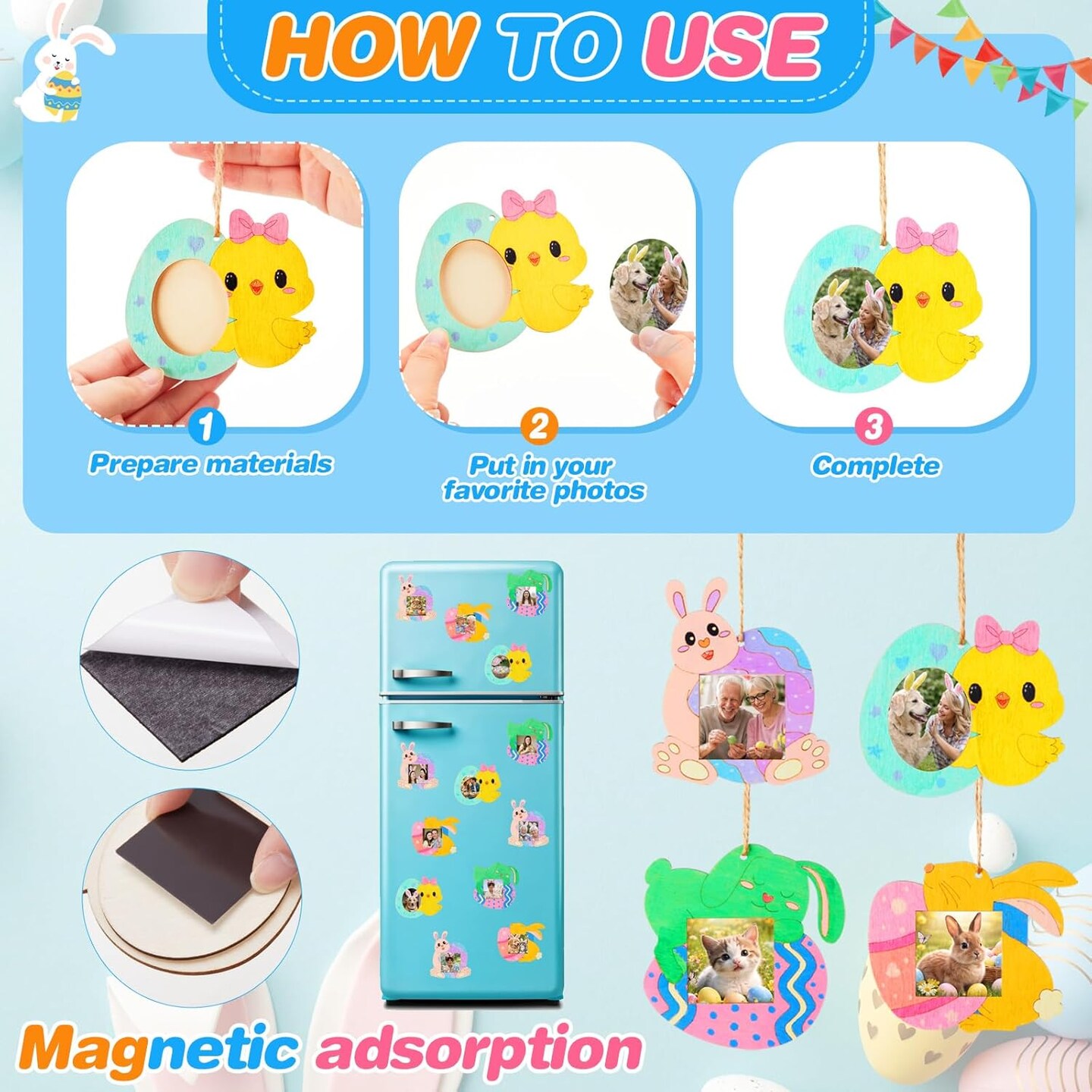 39-Piece Easter Craft Kit – DIY Magnetic Bunny & Egg Wooden Photo Frames with Paints, Brushes, and Magnetic Stickers for Easter Decorations & Family Craft