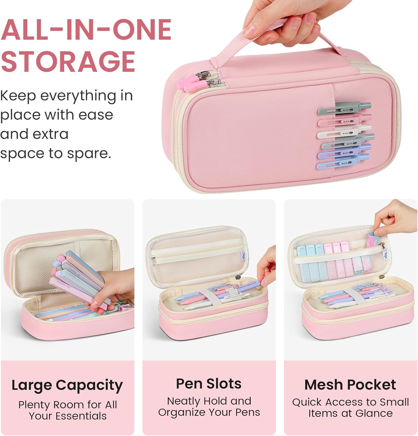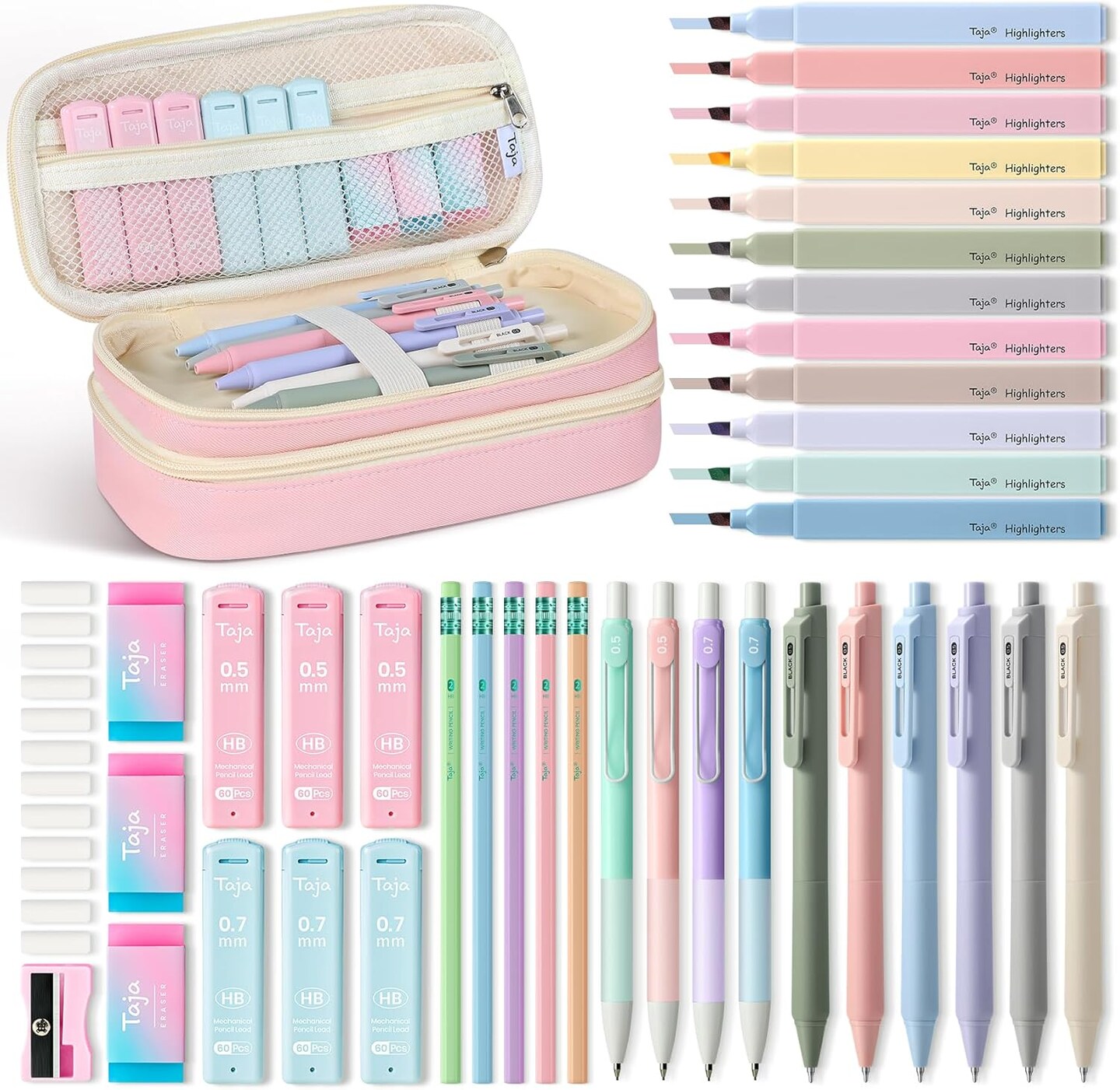 39-Piece Pastel School Supplies Set with Case – Highlighters, Gel Pens, Mechanical & Pencils (Pink)