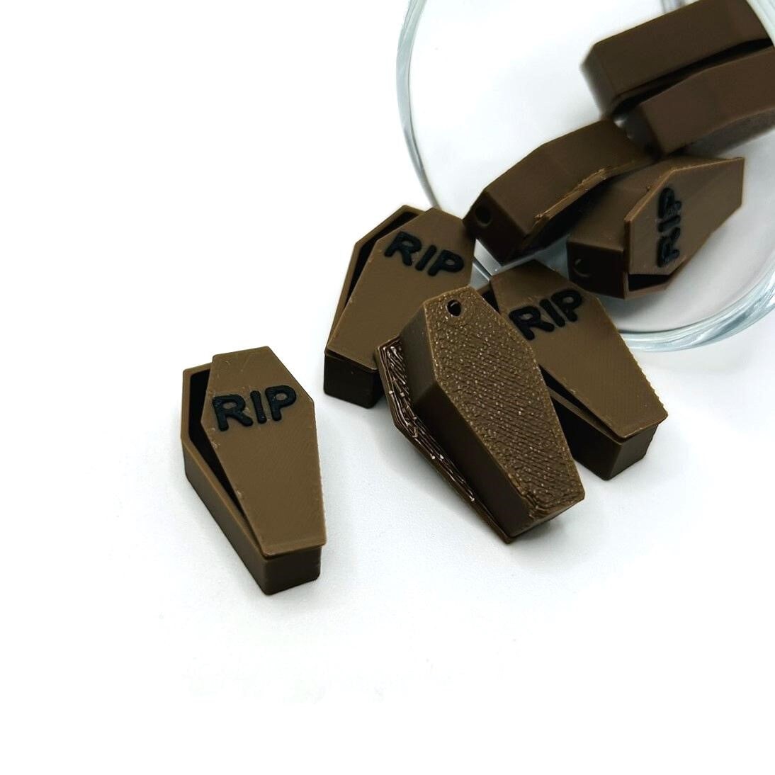 3D Brown Halloween Coffin Charms, 14x28mm