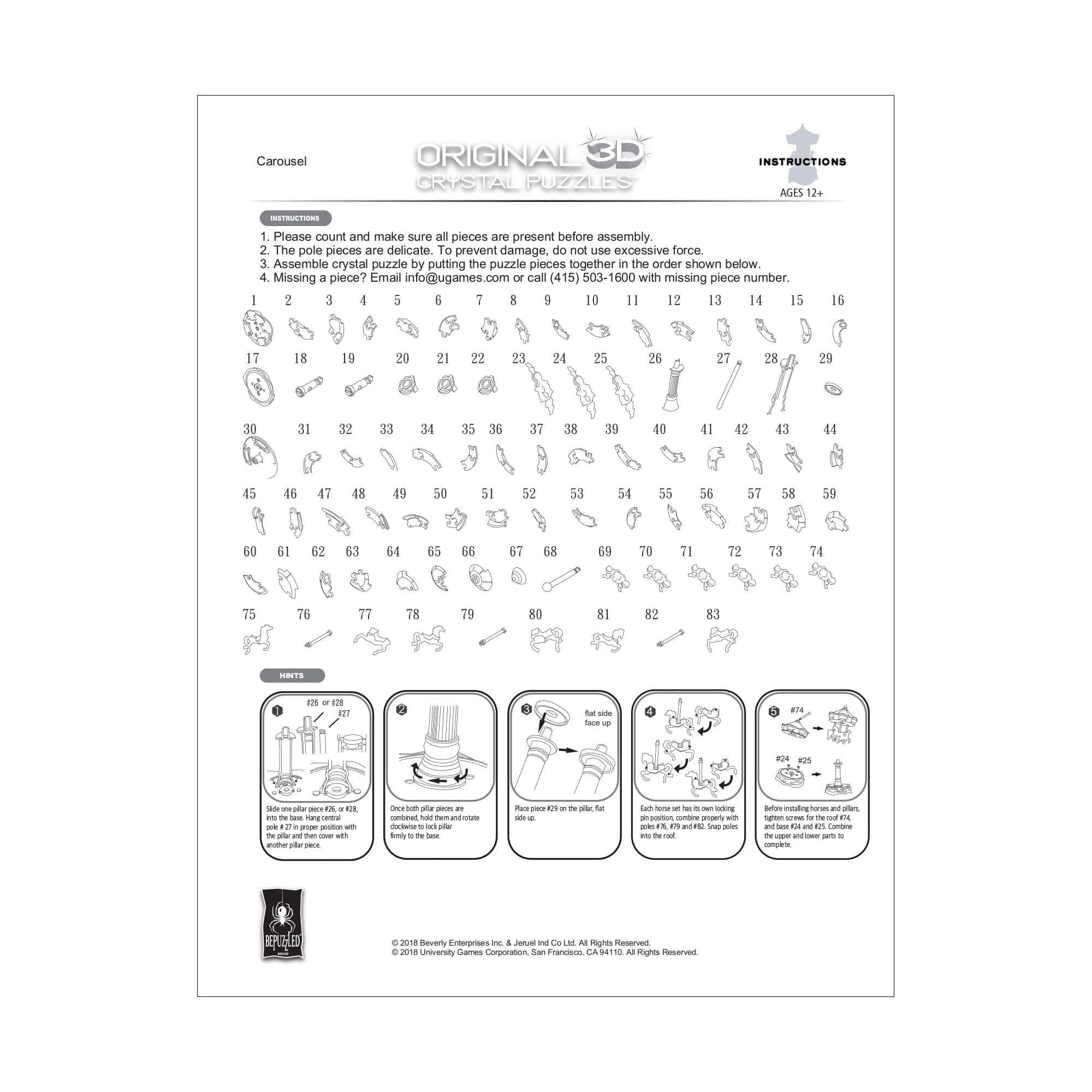 3D Crystal Puzzle - Carousel (White/Red): 83 Pcs