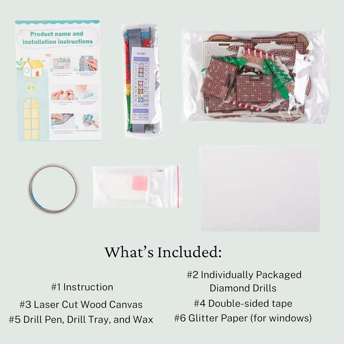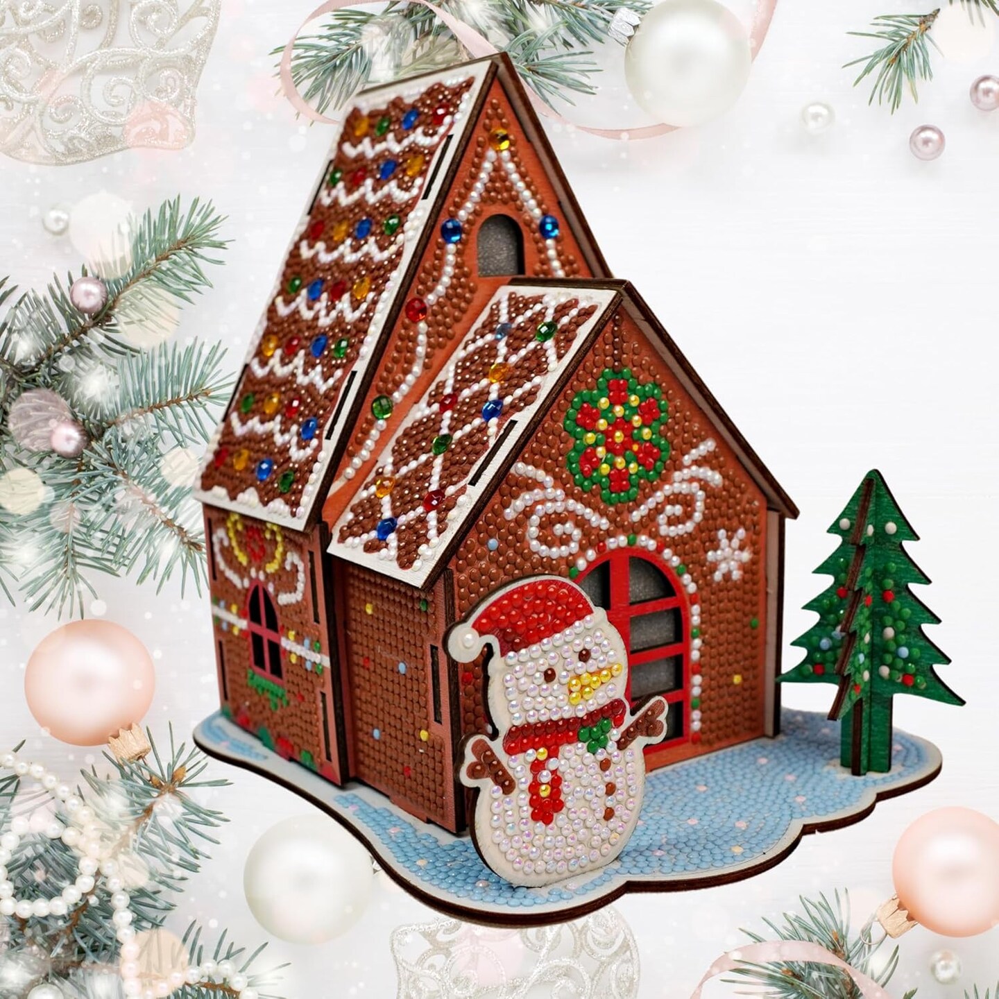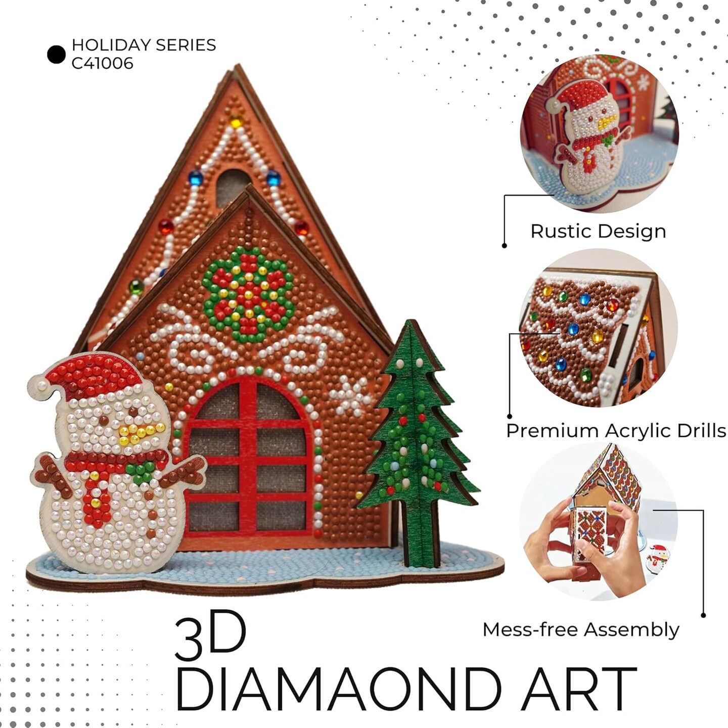 3D Diamond Painting Kit – Gingerbread House Christmas Cabin, Full Drill DIY Mosaic Holiday Decor, Festive Craft Kit