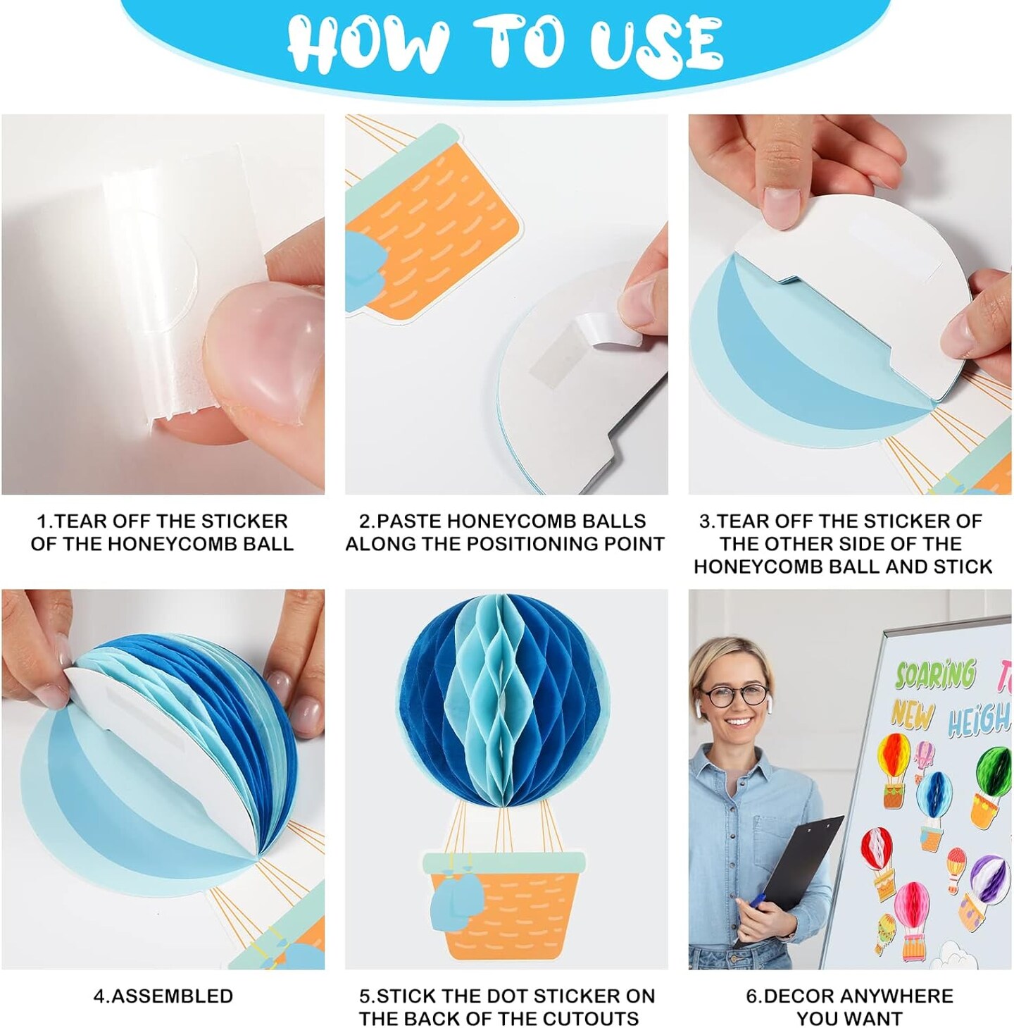 3D Hot Air Balloon Honeycomb Bulletin Board Set for School Classroom Decoration