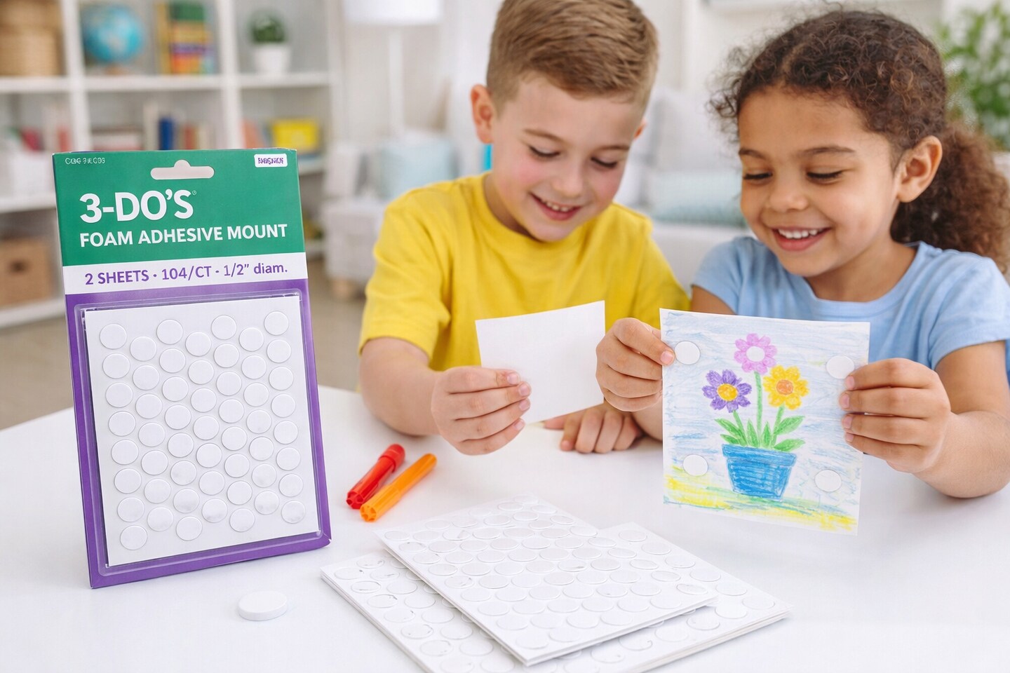 3-DO'S Foam Adhesive Mount Dots 1/2" Diameter – 104 Count Double-Sided Foam Sticky Dots for Crafts, Scrapbooking & Classroom Projects