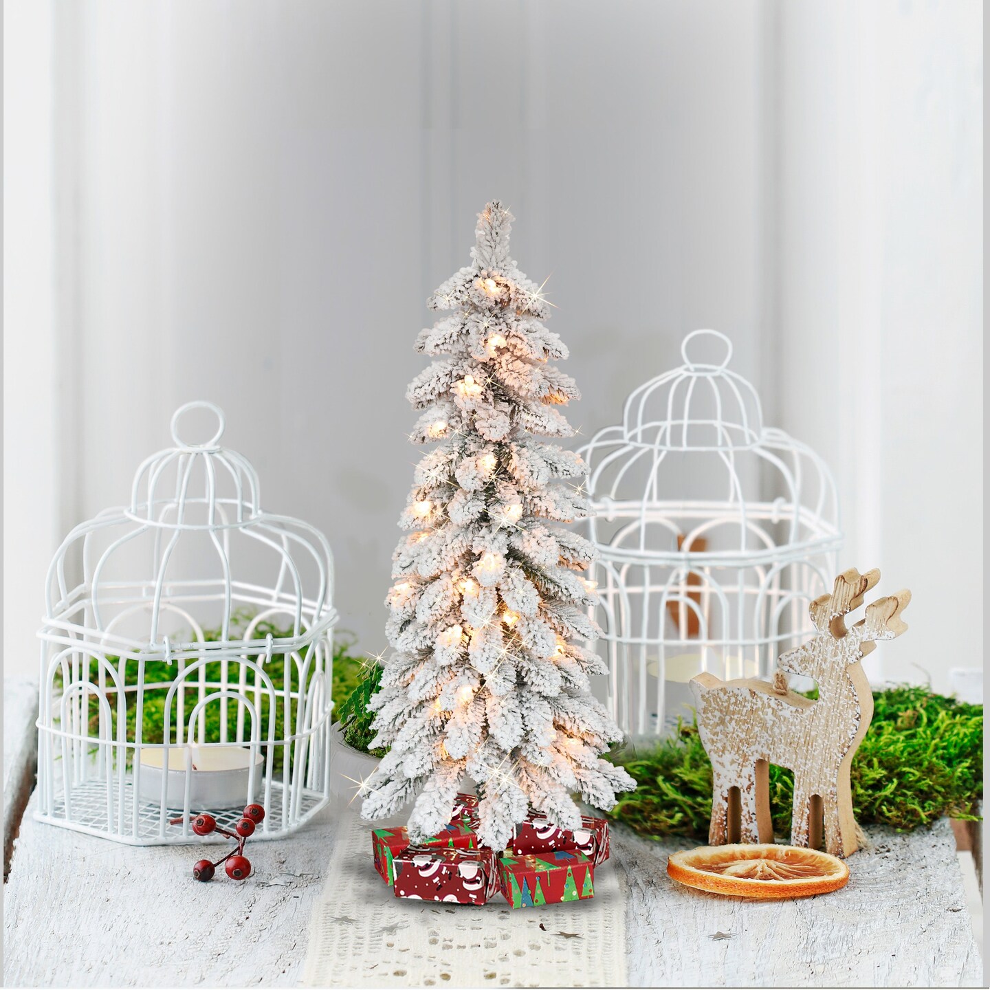 3ft Pre-Lit Flocked Pencil Alpine Christmas Tree