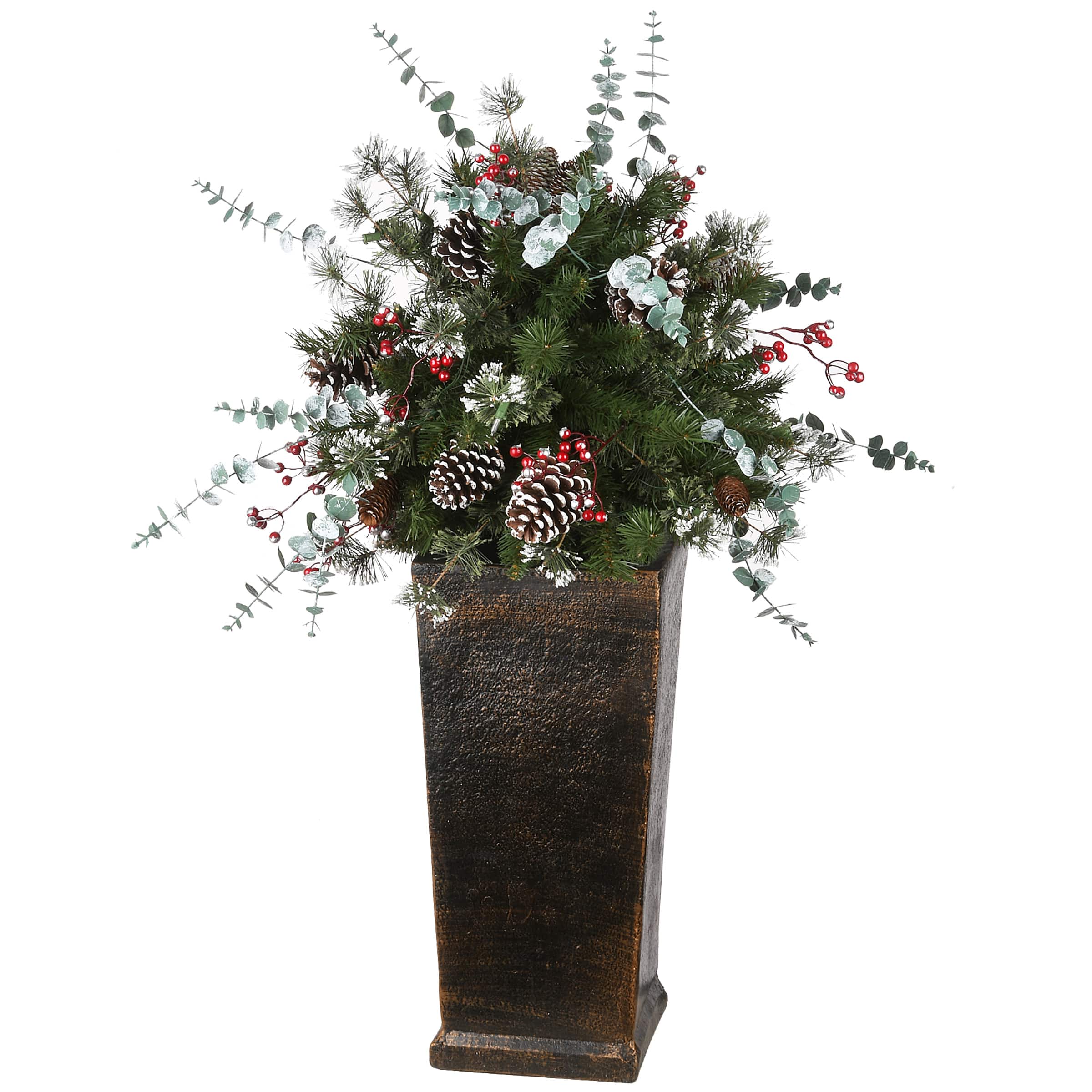 3ft. Pre-Lit Meadow Basin Artificial Christmas Tree in Tall Planter, Warm White LED Lights