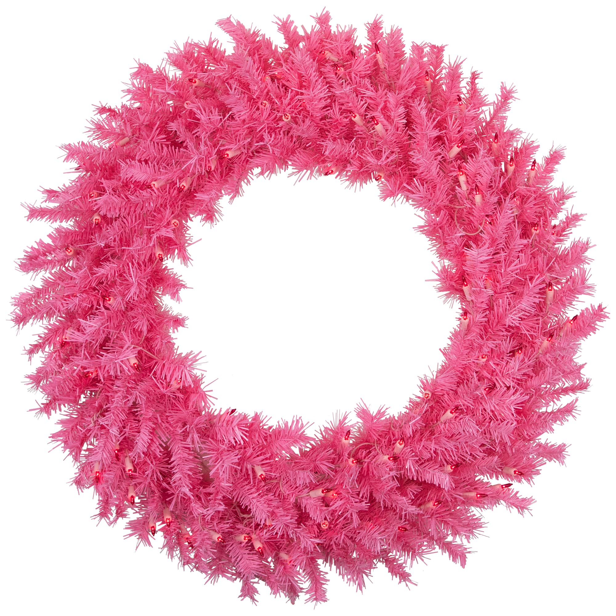 3ft. Pre-Lit Pink Spruce Christmas Wreath, Pink Lights