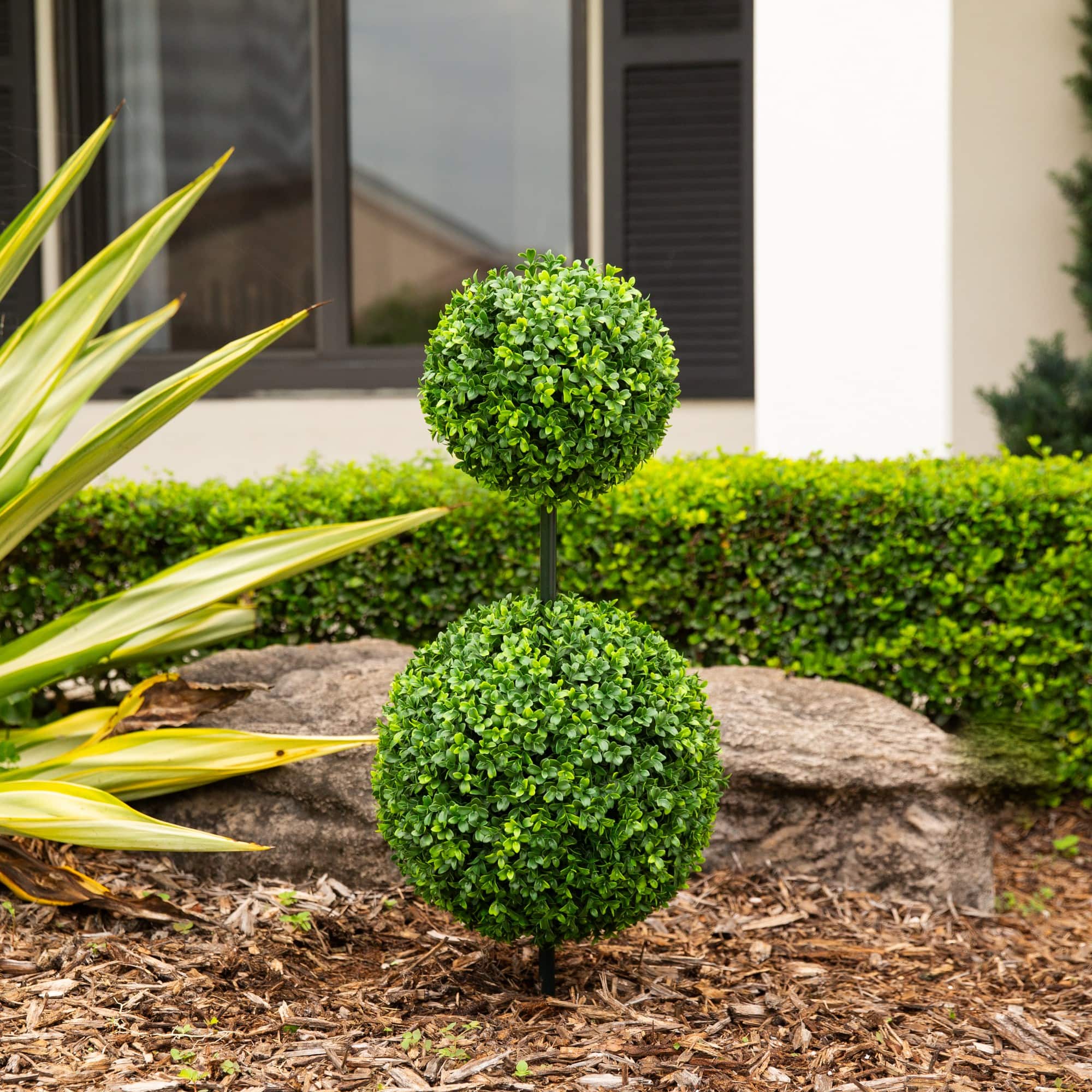 3ft. UV Resistant Artificial Boxwood Topiary with Integrated Ground Stake (Indoor/Outdoor)