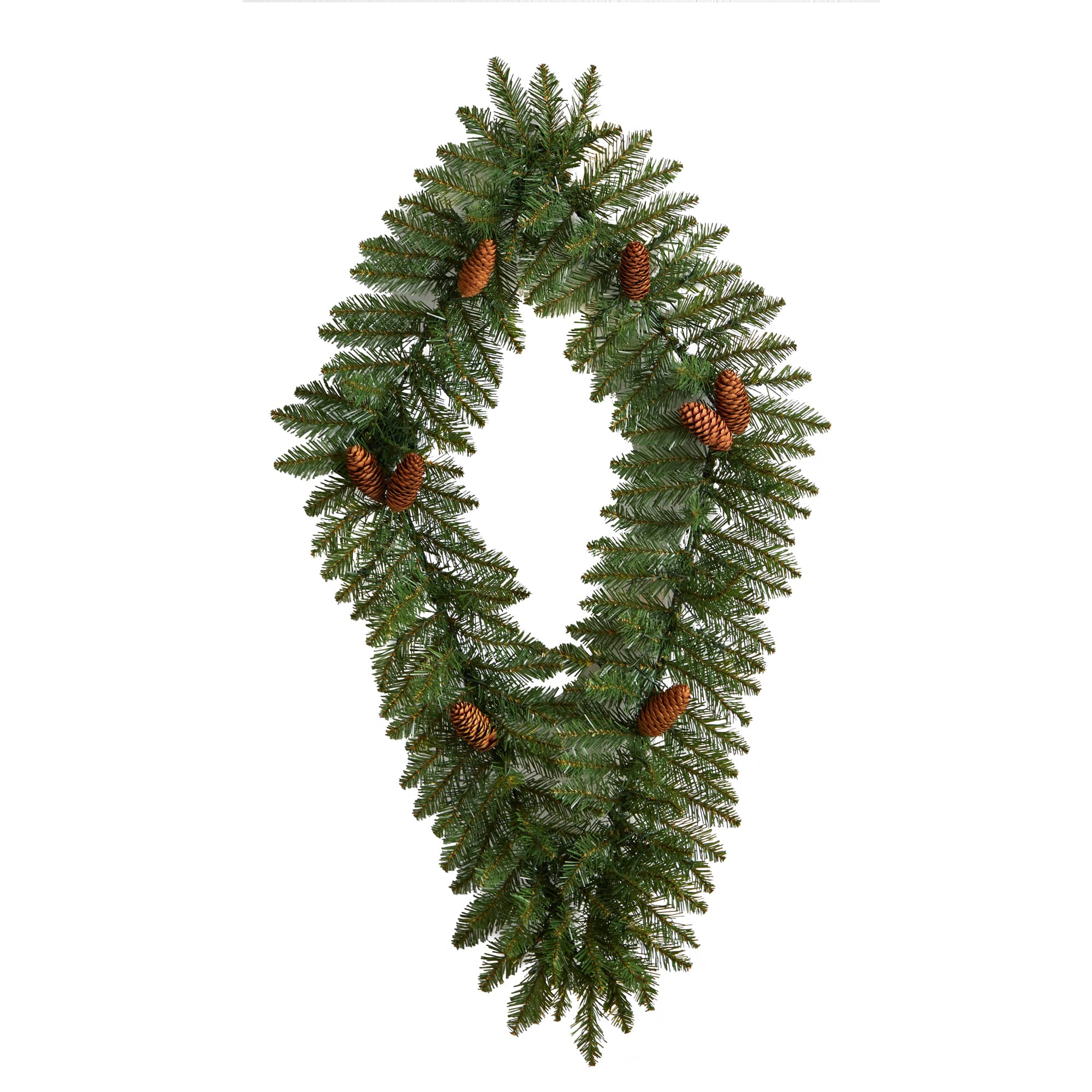 3ft. White LED Lights Holiday Geometric Christmas Diamond Wreath With Pinecones