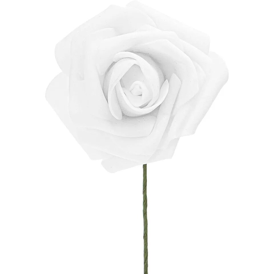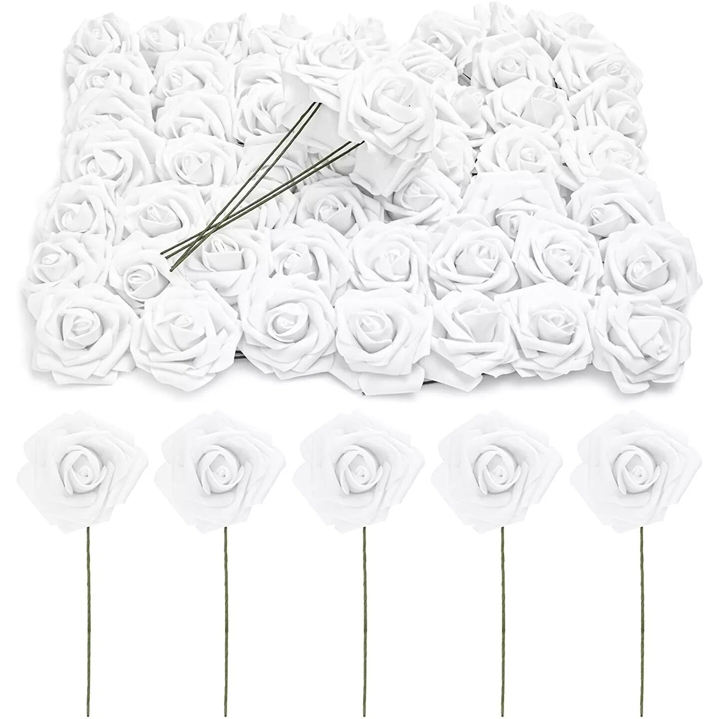 3-Inch Artificial Rose Flowers Heads with Stems (60 Pack), White