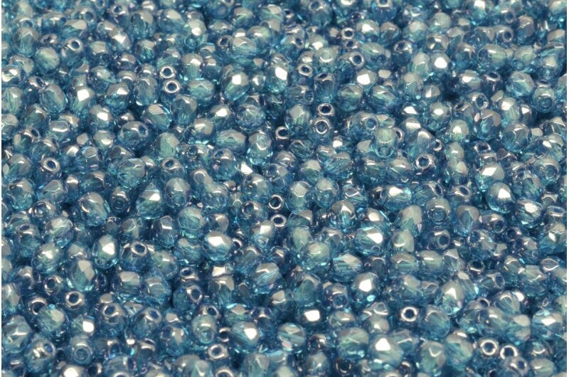 3mm Czech Fire Polish Beads, Crystal Blue Luster, 50 pieces