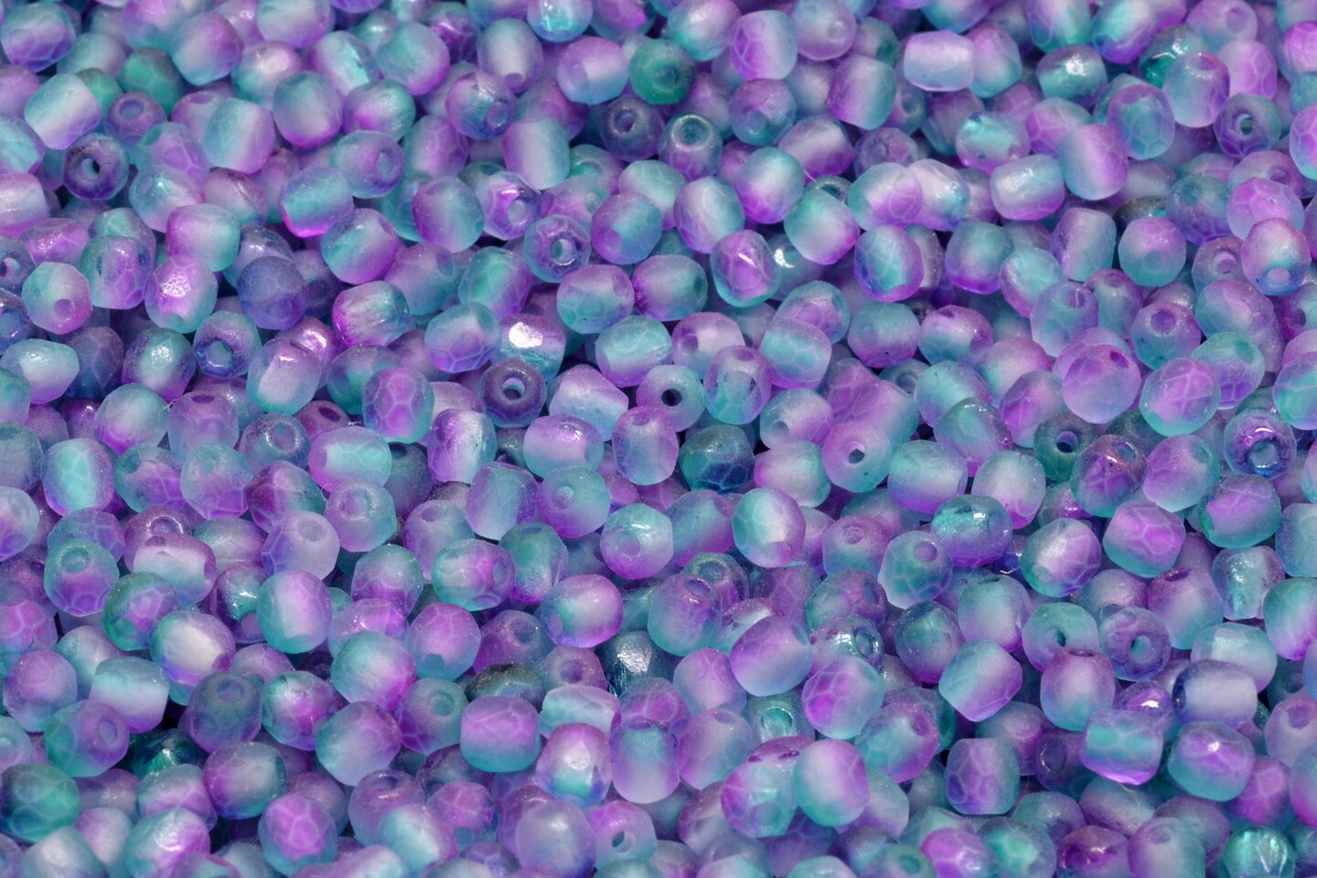 3mm Czech Fire Polish Beads, Matte Crystal Blue/Purple, 50 pieces