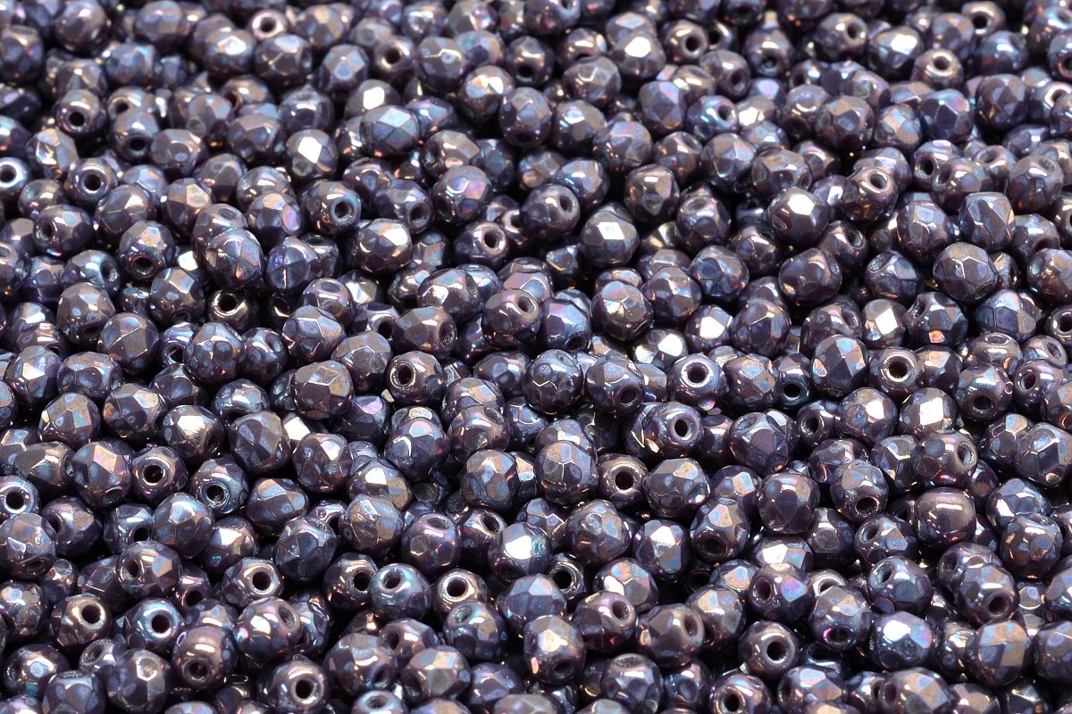 3mm Czech Fire Polish Round Bead, Dark Violet Nebula, 50 pieces