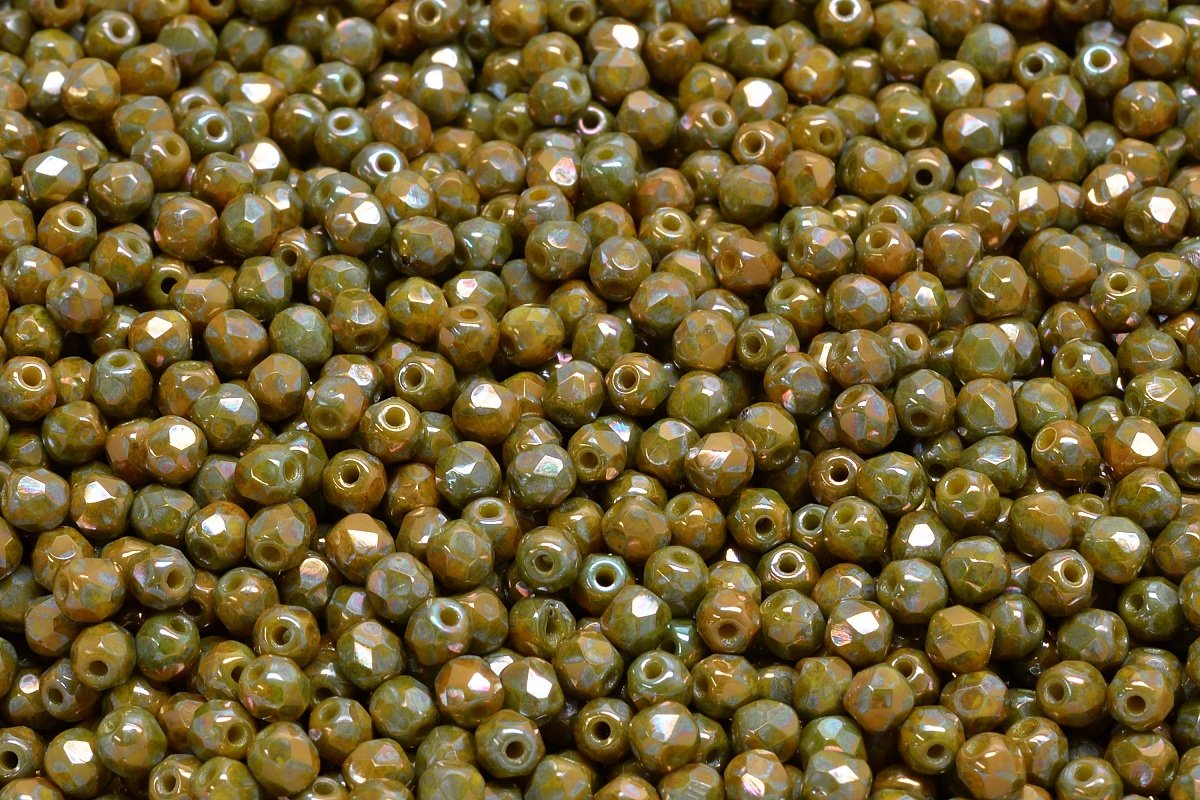 3mm Czech Fire Polish Round Bead, Lemon Nebula, 50 pieces