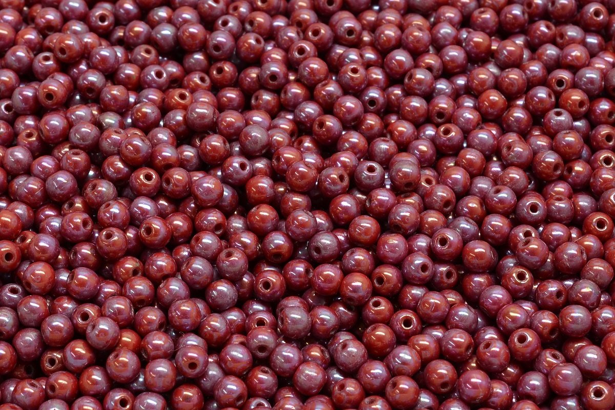 3mm Czech Round Druk Bead, Red Nebula, 50 pieces