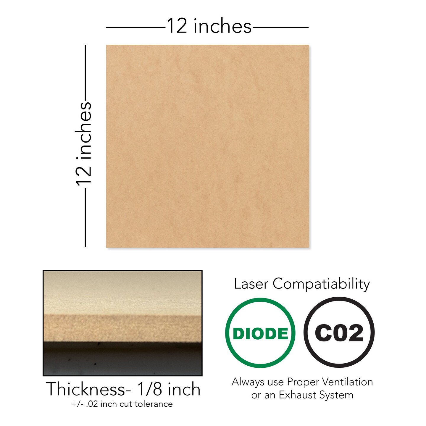 3mm or 6mm MDF (Medium Density Fibreboard), 12x12, 12x19, 16x24, Unfinished | for Laser Engraving, CNC, Wood Burning, Router, Scroll Saw.